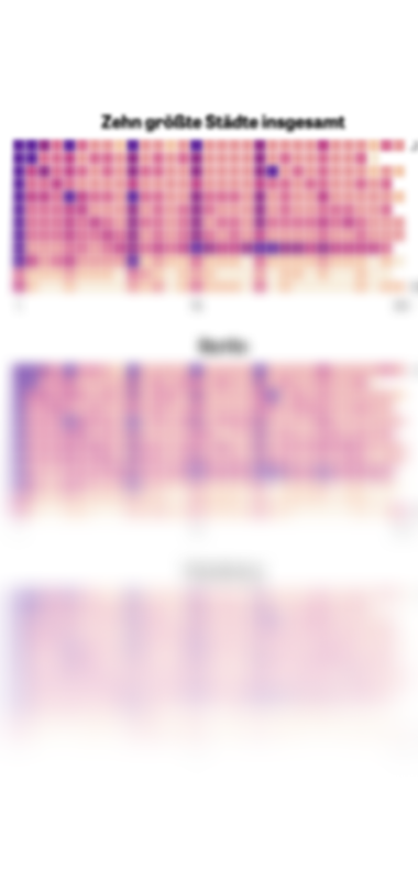 Beim Betrachten unserer Grafiken ist es Ihnen bestimmt auch sofort ins Auge gefallen: Auf allen Abbildungen bildet sich das gleiche Muster. Eine besonders dunkle Linie zieht sich senkrecht am ersten Tag eines Monats nach unten, von Januar bis Oktober. Weitere Linien entdeckt man in der Senkrechten am 10., 15., und 20. Auf der Waagrechten ist der September eine dunkle Linie. Woran liegt das?