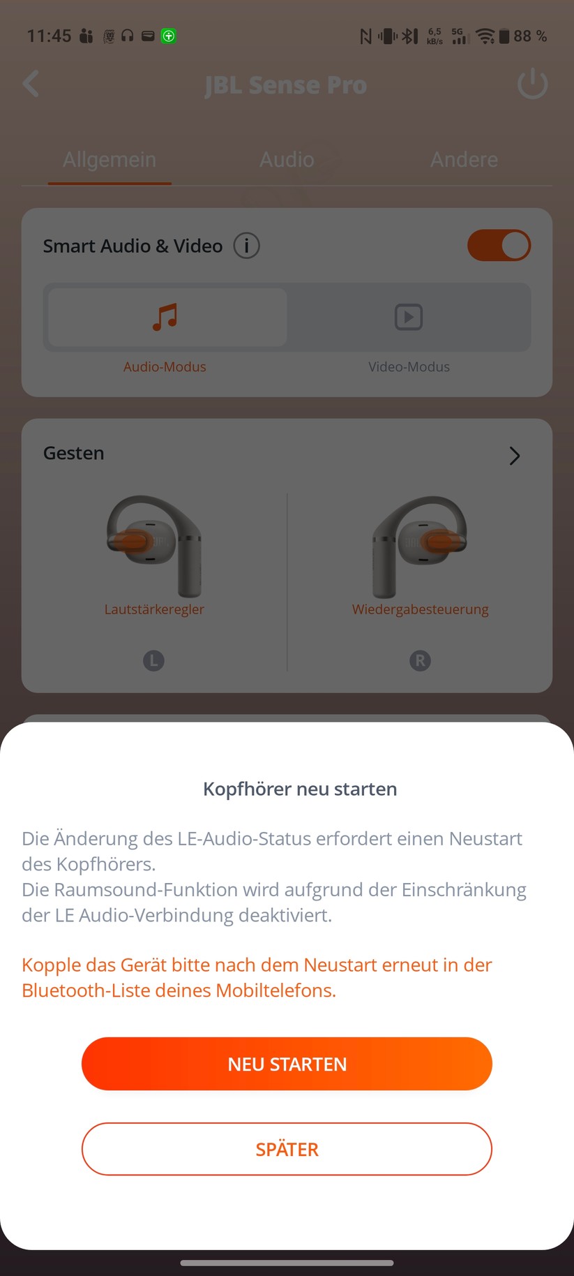 Bedienung und App des JBL Sense Pro