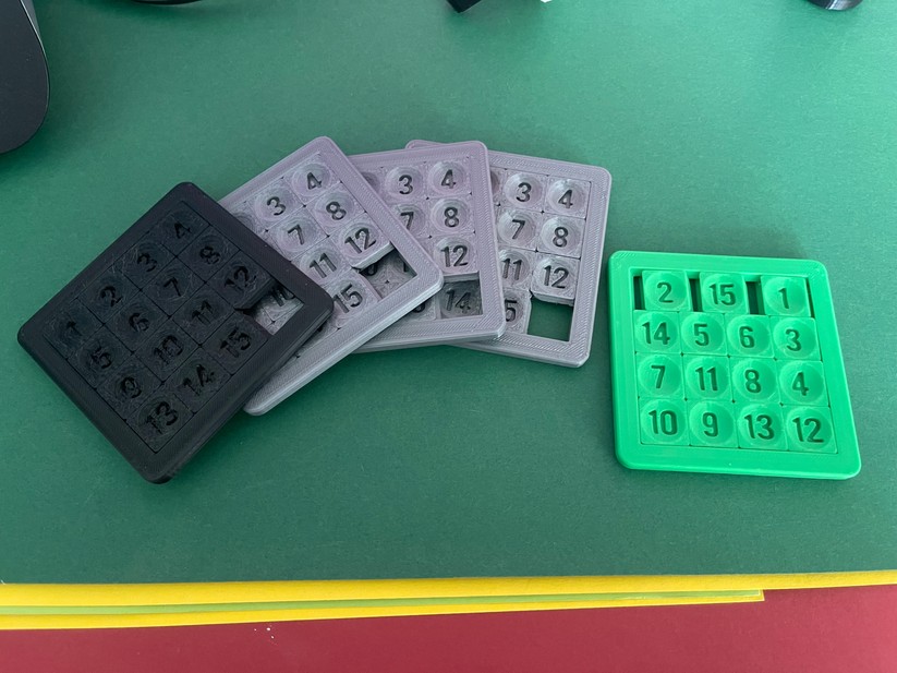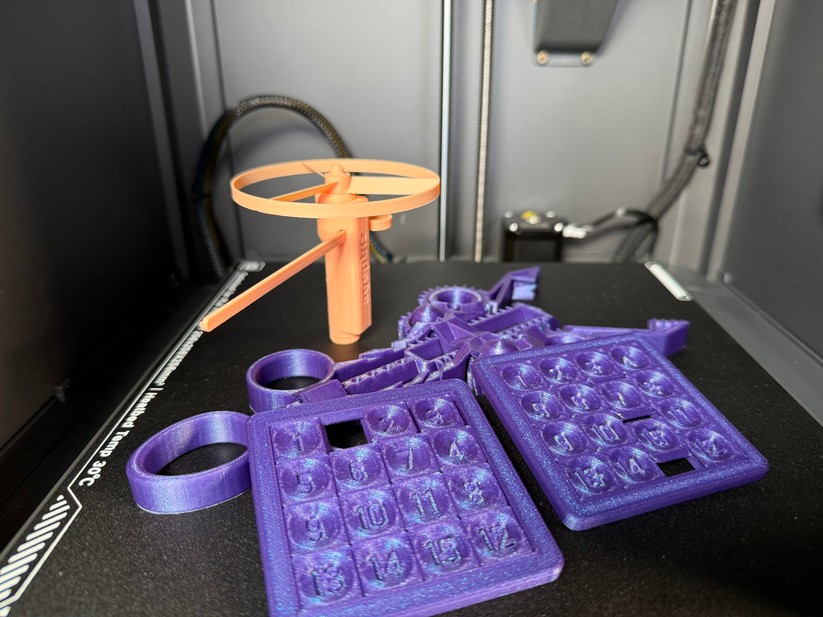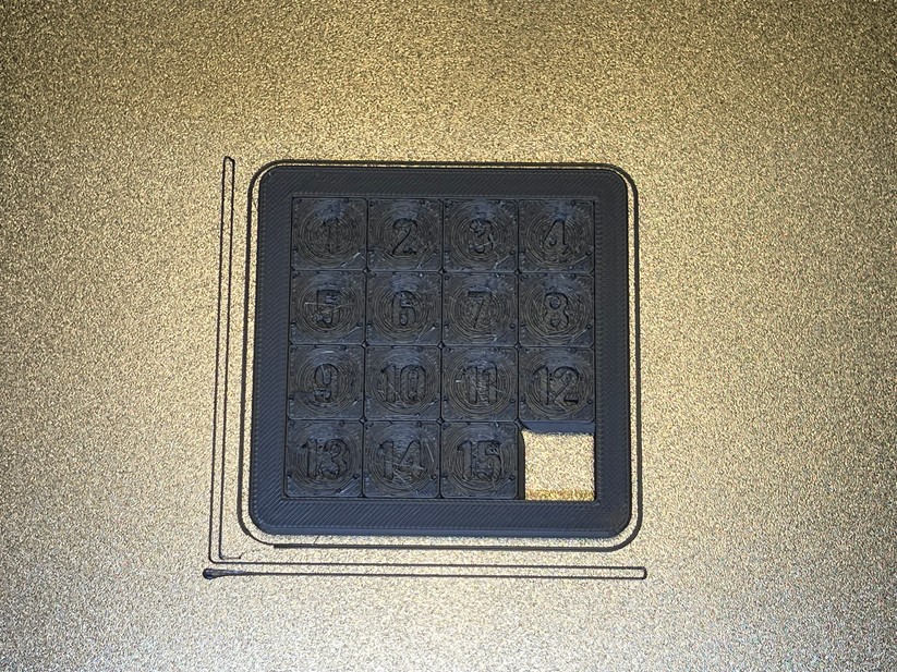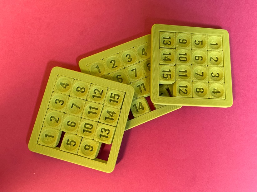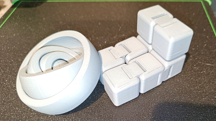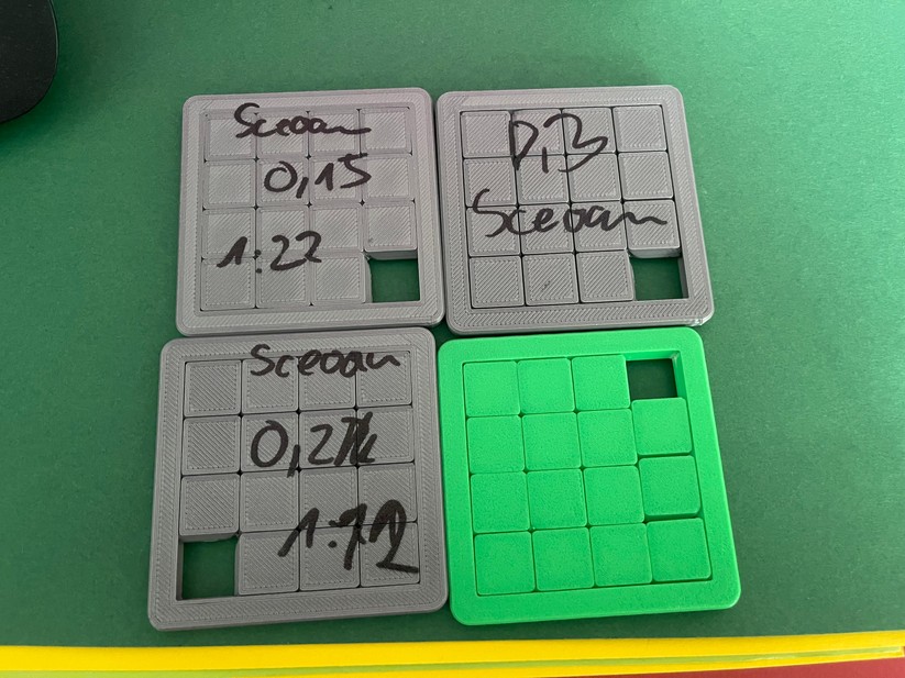 Während unsere Druckergebnisse optisch allesamt ordentlich aussehen, haben wir mit Print-in-Place-Drucken ein paar Probleme. Dabei handelt es sich um Objekte mit Scharnieren, Federn oder sonstigen beweglichen Verbindungen, die am Stück gedruckt werden. Damit die mechanischen Teile hinterher funktionieren, ist eine hohe Präzision beim Druck nötig. Das testen wir beispielsweise mit dem Slider-Puzzle, das wir in drei Ausführungen drucken – mit 0,15, 0,20 und 0,30 mm Abstand zwischen den beweglichen Teilen. Während der kürzlich getestete Sceoan Windstorm S1 in keinem Fall bewegliche Teile produziert, ließen sich beim Q1 Pro nur die 0,3-mm-Version nach etwas Nacharbeit bewegen. Der aktuell auf 199 Euro reduzierte Bambu A1 Mini druckt im Vergleich dazu so präzise, dass auch die 0,15-mm-Ausführung perfekt funktioniert.
