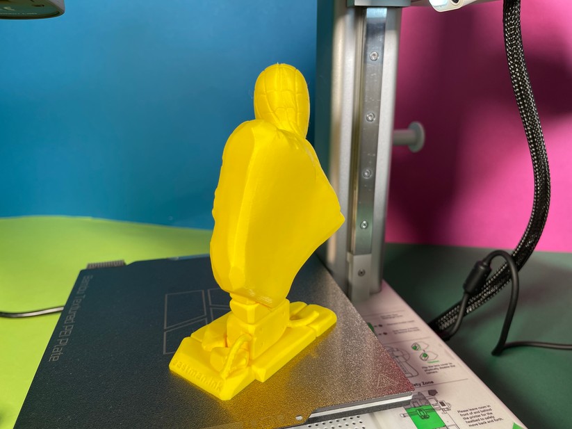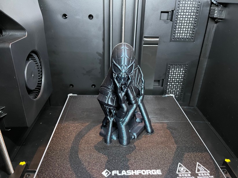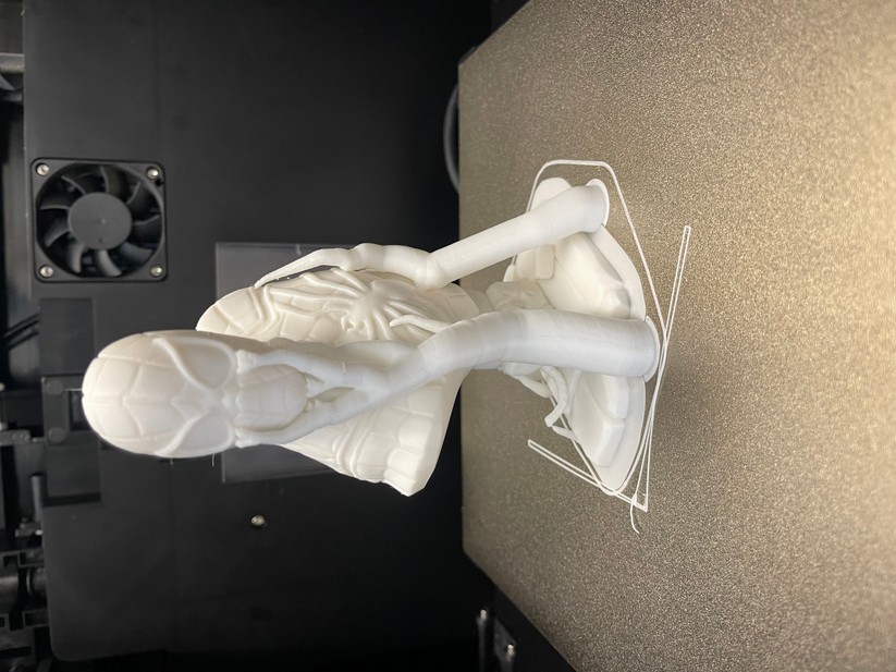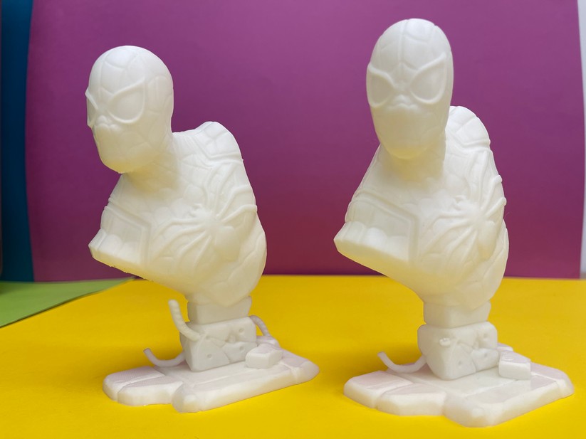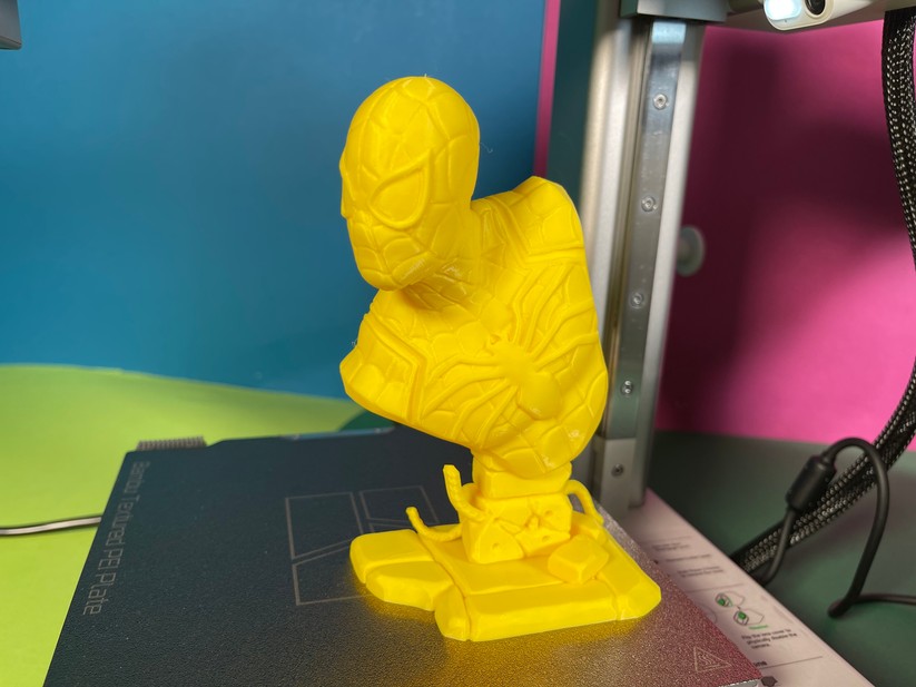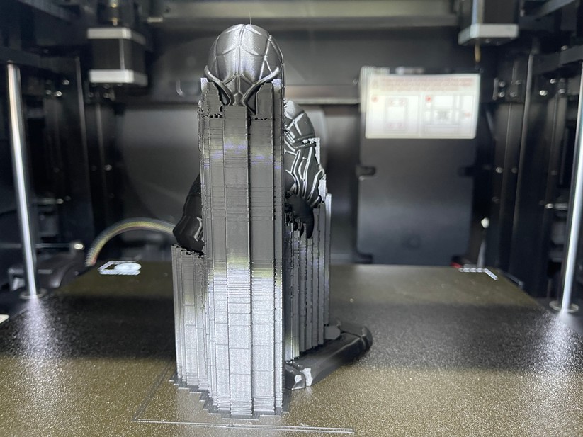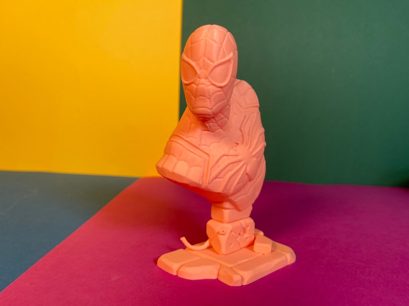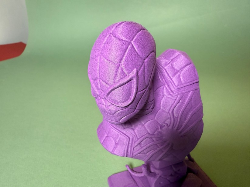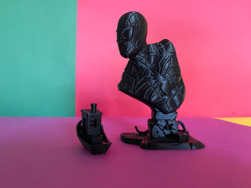 Wir haben beim Q1 Pro sehr gute Ergebnisse mit ABS-Filament erzielt. Vielleicht wegen der höheren Temperaturen, vielleicht wegen des niedriger oder gar nicht drehenden Bauteil-Lüfters, vielleicht wegen der etwas niedrigeren Arbeitsgeschwindigkeit – aber in ABS funktionierten in unserem Test auch Print-in-Place-Drucke viel besser. Das Sliding Puzzle ließ sich mit etwas Nacharbeit und leichter Gewalt sogar in der 0,15-mm-Ausführung bewegen – wenn auch streng. Unsere Spiderman-Statue hat in ABS eine überraschend gute Oberfläche. Wenn das Zeug nicht so stinken würde (und man auch wegen der giftigen Dämpfe nur in einem gut belüfteten Raum und auf keinen Fall im Schlafzimmer drucken sollte), würden wir ja quasi nur noch ABS auf dem Qidi drucken – und das ist auch genau seine Stärke.