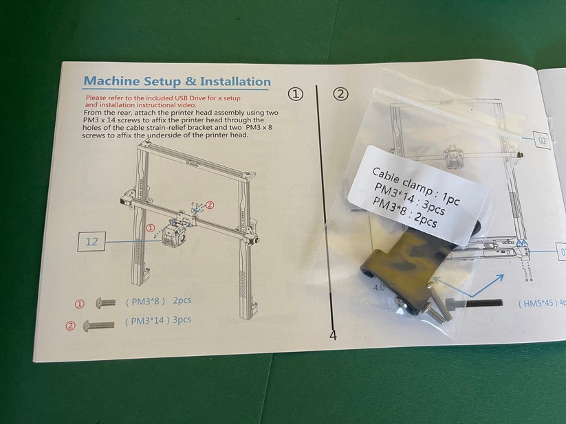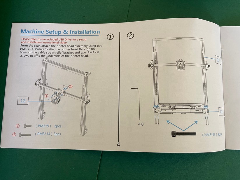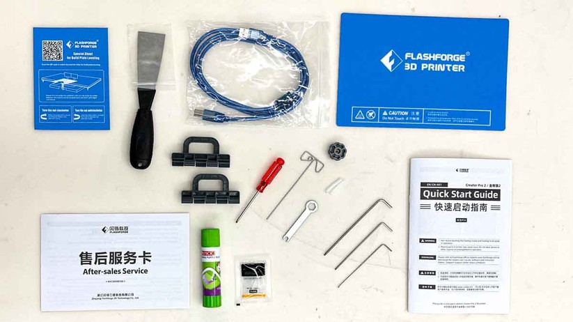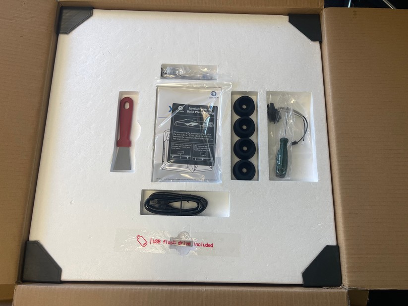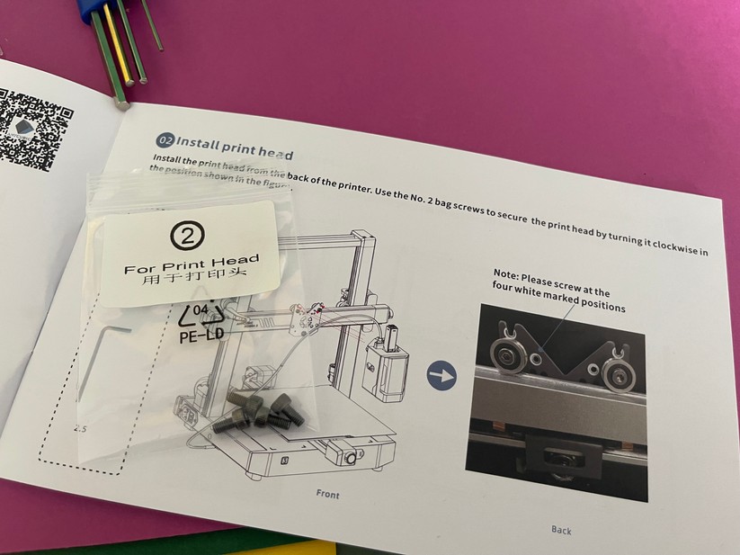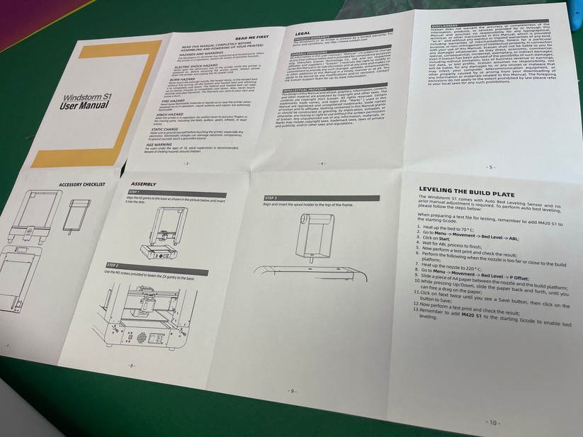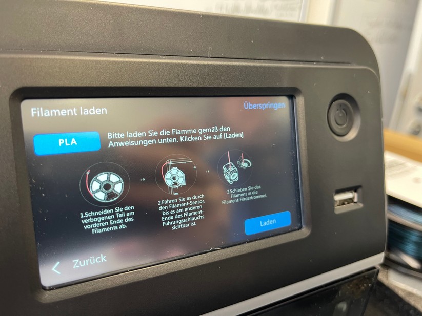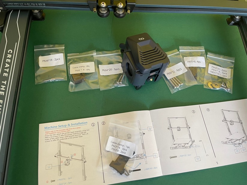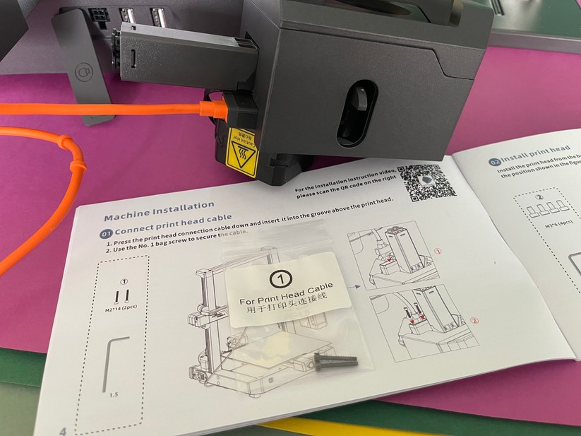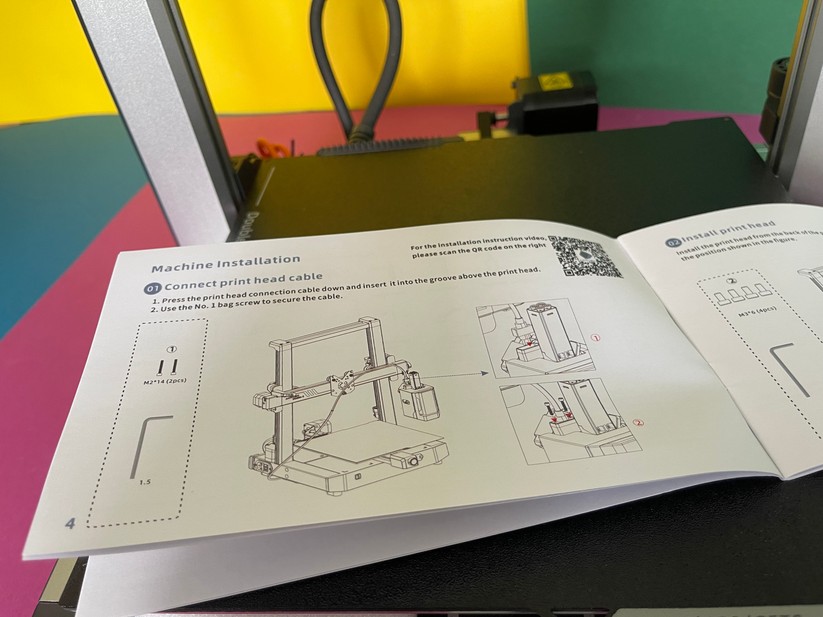 Typisch Qidi: Es gibt eine gedruckte Schnellstart-Anleitung, die den Anwender in wenigen Schritten dabei unterstützt, den Q1 Pro zum Laufen zu bekommen. Sobald er Strom hat, geht der weitere Aufbau über eine geführte Anleitung auf dem resistiven Touchscreen-Display weiter. Animationen, Bilder und Grafiken zeigen, wo man die Schrauben der Transportsicherung lösen muss und was noch zu tun ist – klasse!