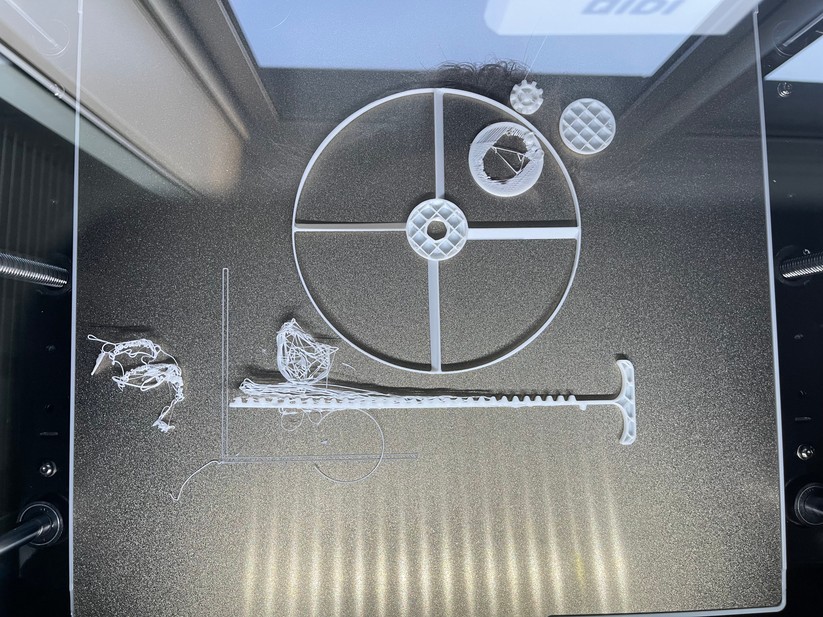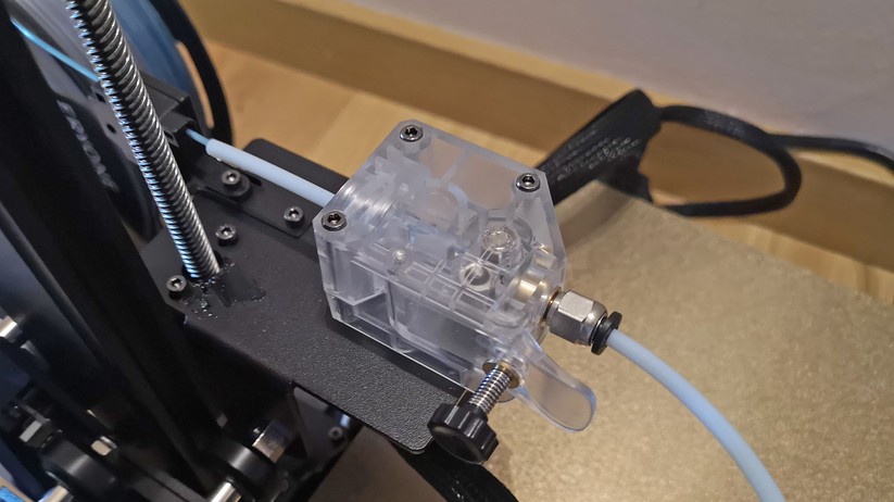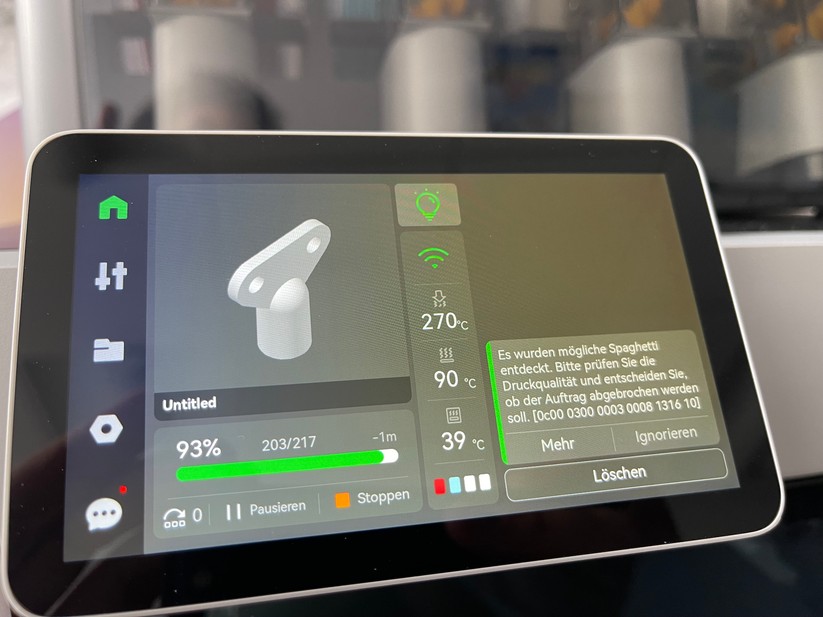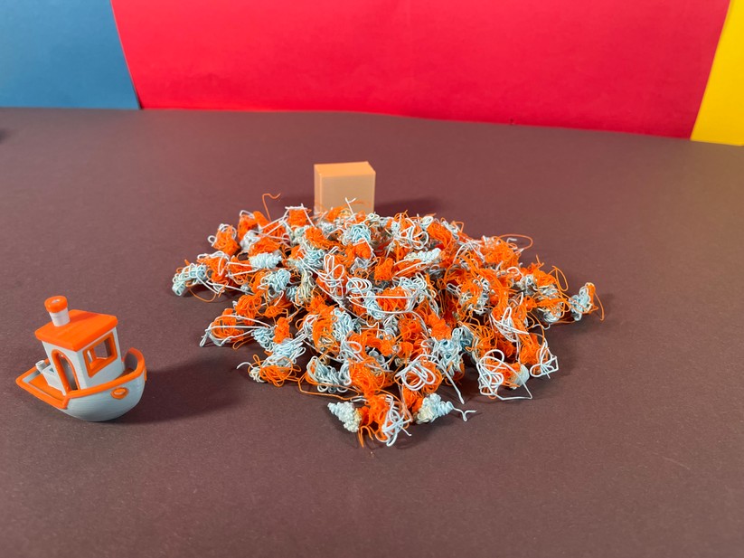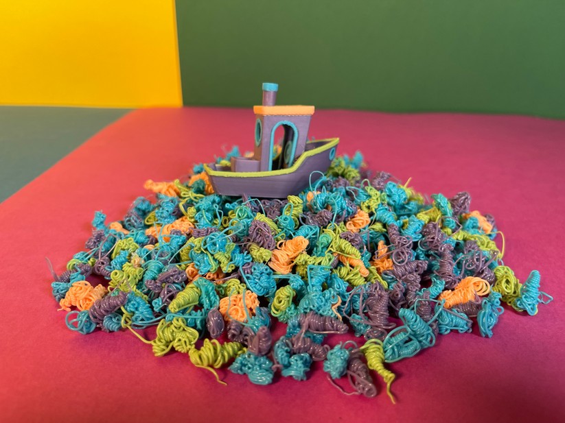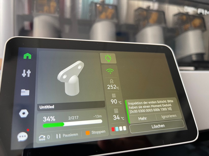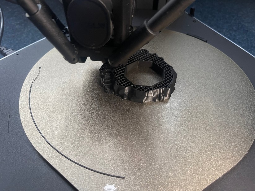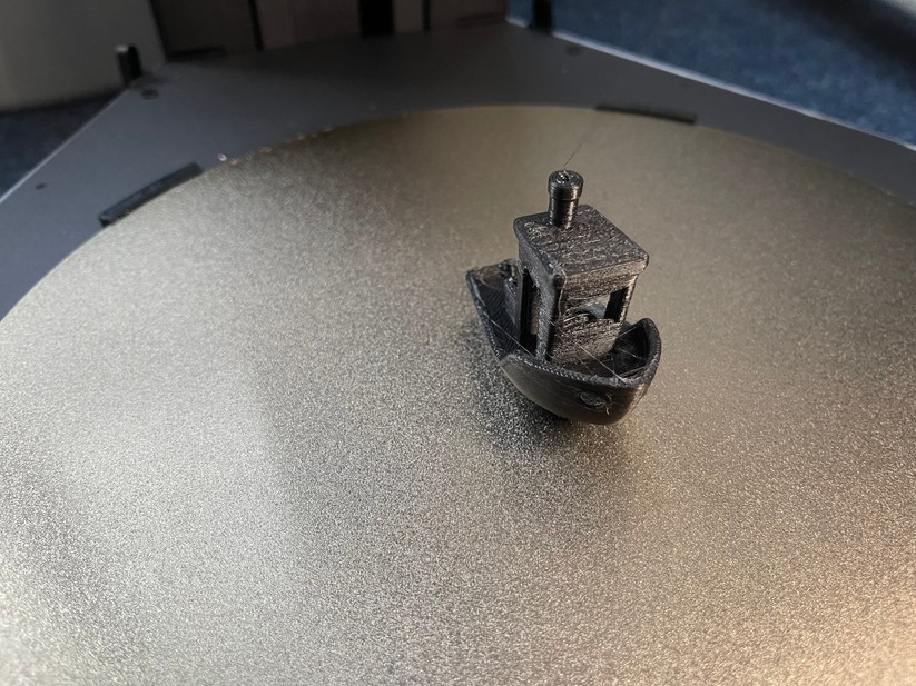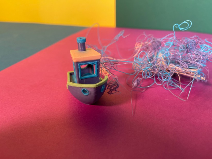 Wir haben nach dem Zusammenbau wie gewohnt wild drauflos gedruckt. Erste Versuche mit PLA und PLA+ haben noch gut funktioniert, spätestens bei PETG hatten wir aber mit starkem Stringing (Fäden ziehen) zu kämpfen, welches dann auch bei allen anderen Filament-Typen auftrat.