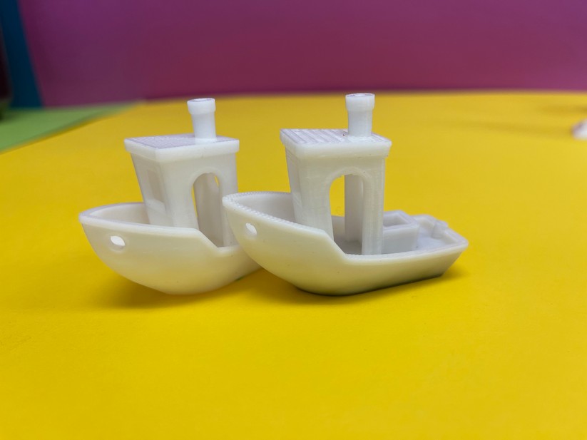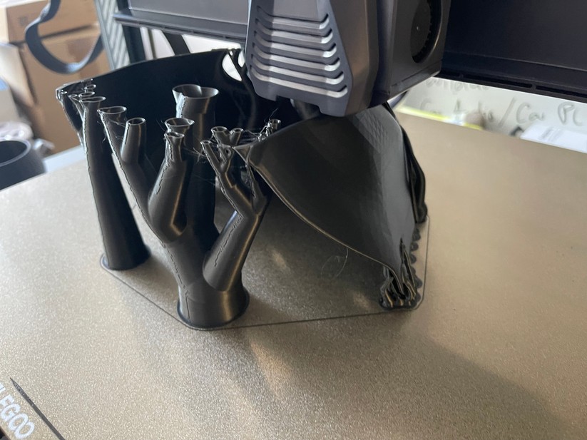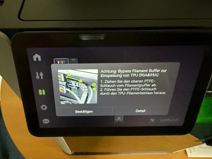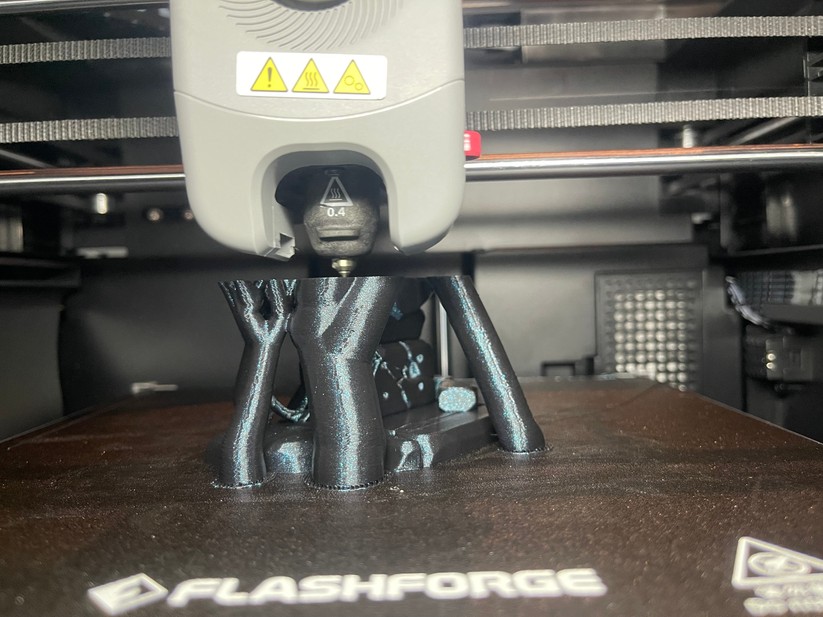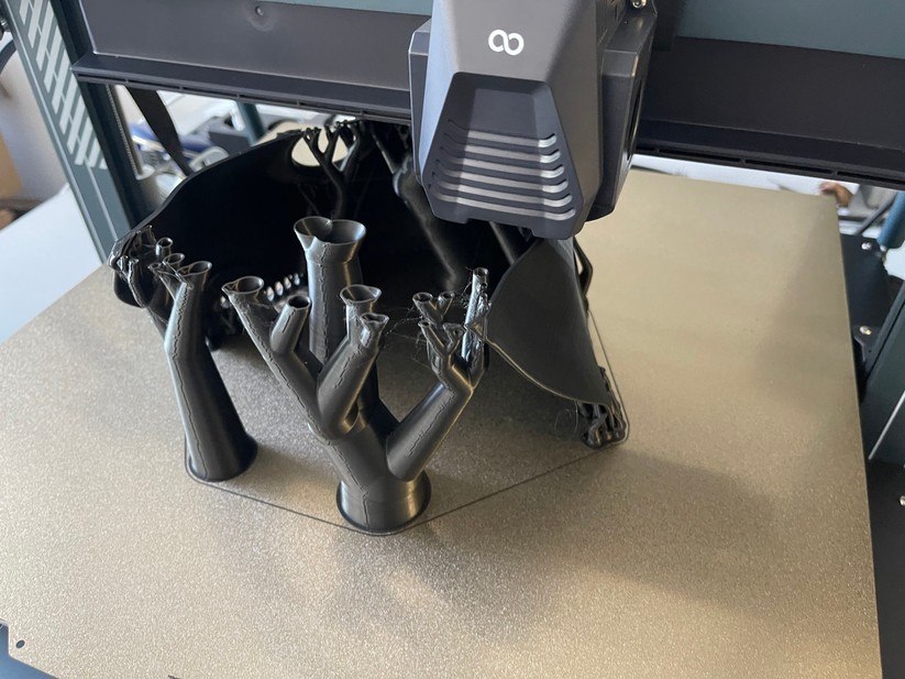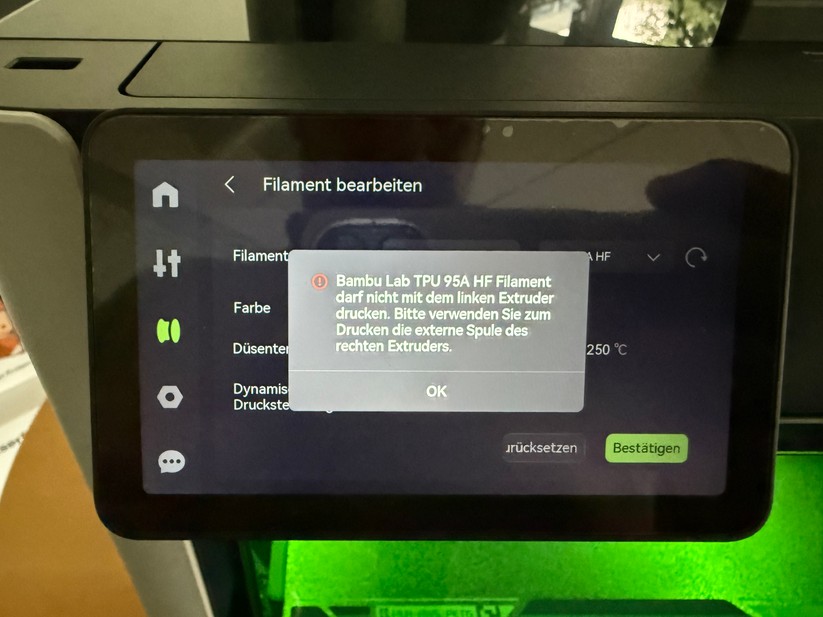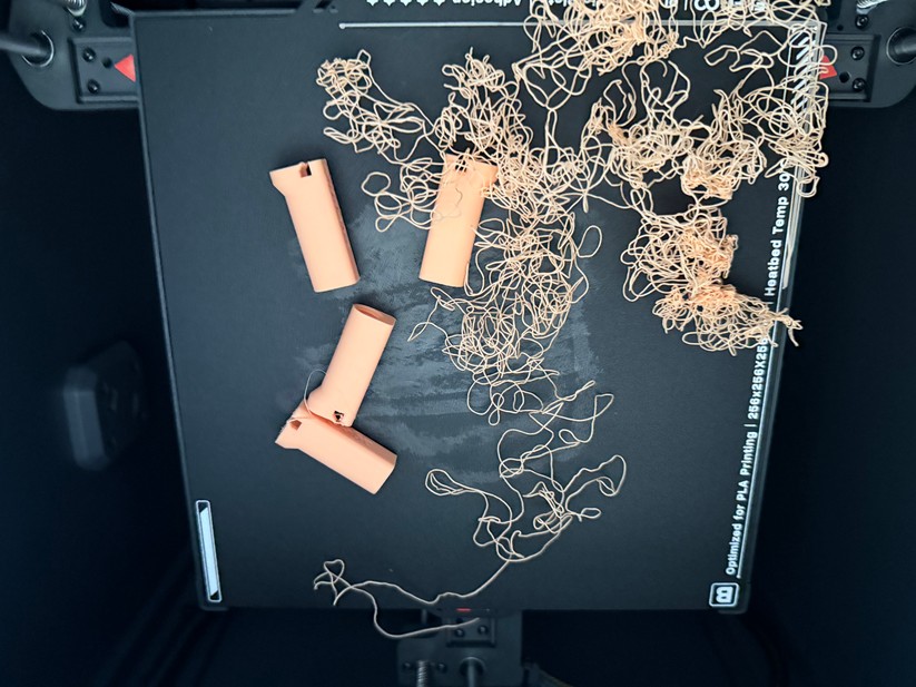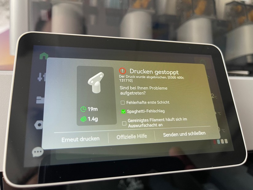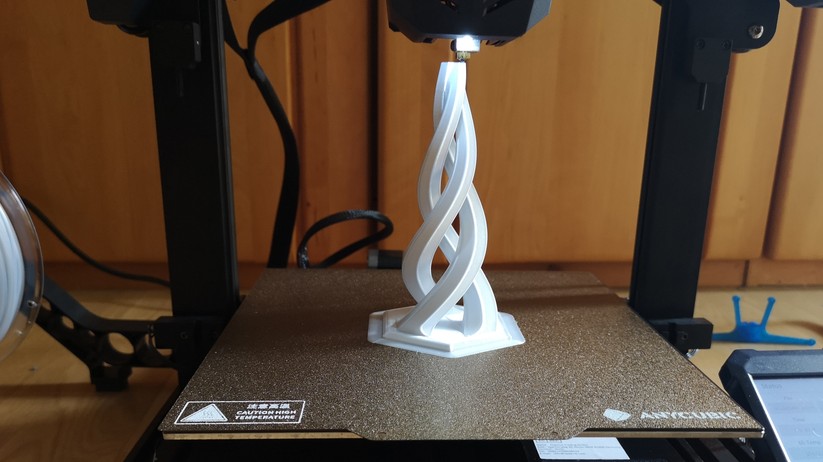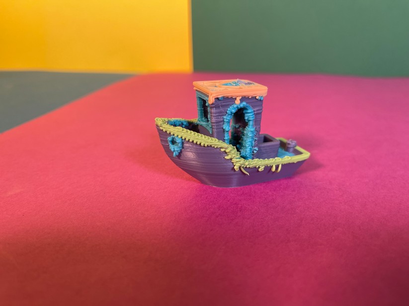 Wir haben nach dem Zusammenbau wie gewohnt wild drauflos gedruckt. Erste Versuche mit PLA und PLA+ haben noch gut funktioniert, spätestens bei PETG hatten wir aber mit starkem Stringing (Fäden ziehen) zu kämpfen, welches dann auch bei allen anderen Filament-Typen auftrat.