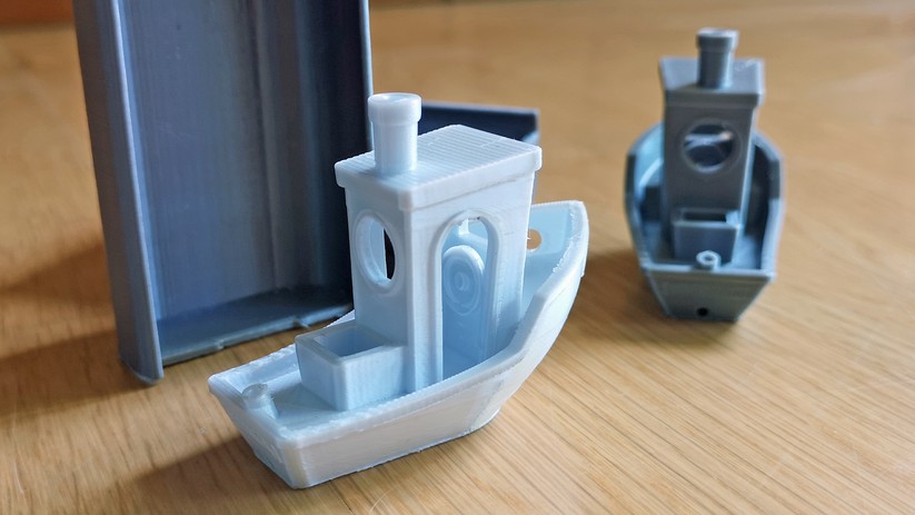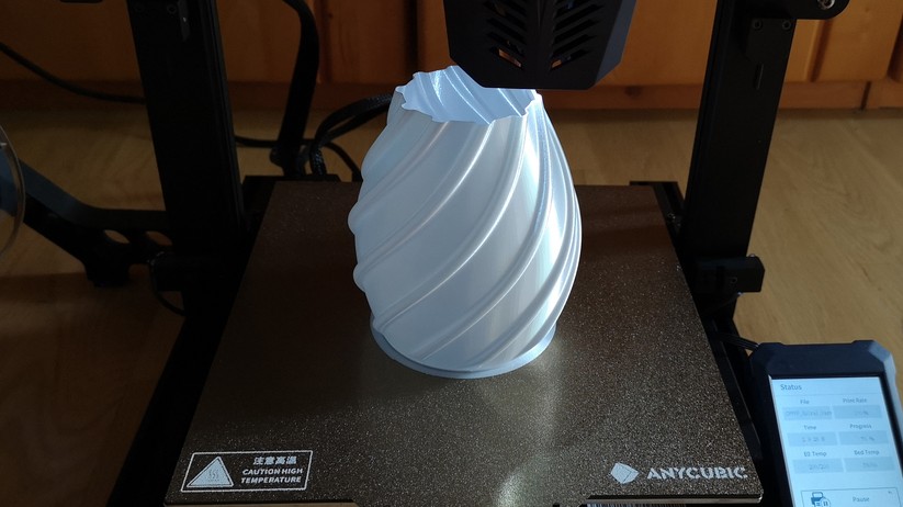 Die zwei Kisten haben wir mit 60 mm/s respektive mit 250 mm/s gedruckt. Bei 60 mm/s hat der Vorgang rund 17 Stunden gedauert, bei der maximalen Druckgeschwindigkeit knappe 11 Stunden – also 35 Prozent schneller. Dabei wird deutlich, dass eine fünffache Steigerung der maximalen Druckgeschwindigkeit nicht zwingend auch ein Fünftel der Druckzeit bedeutet: Gerade die ersten Layer und die äußeren Schichten werden trotzdem langsamer bearbeitet, damit es keine Haftungsprobleme gibt und das Ergebnis noch ansehnlich bleibt. Und unabhängig von der zu erwartenden Druckqualität sind so schnelle Druckzeiten eher nicht zu empfehlen. So gibt Anycubic auch die Standarddruckgeschwindigkeit mit 150 mm/s an, was durch die oben genannten Verbesserungen realistisch erscheint.