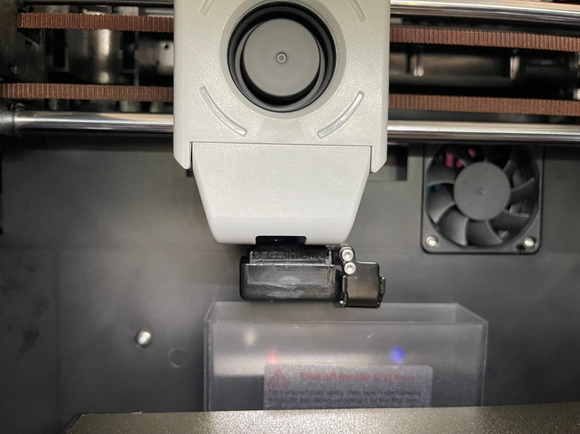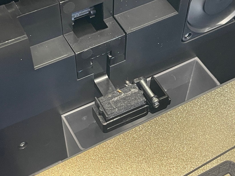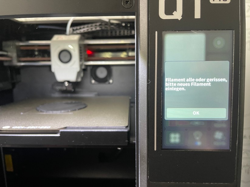 Klasse: Statt eines einfachen Filament-Sensors prüft der Qidi, ob sich das Filament auch tatsächlich bewegt. Feststeckendes Filament wird also hier auch als Fehler erkannt – das können die meisten anderen Drucker in diesem Preisbereich nicht. Ebenfalls überdurchschnittlich ist die Mechanik zur automatischen Reinigung der Druckdüse samt Mülleimer im Druckraum, in dem überschüssige Filament-Fäden (meistens) landen. Die Mechanik wirkt zwar nicht sonderlich stabil, hat ihre Aufgabe im Test aber gut erfüllt. Und je öfter wir damit zu tun haben, umso schwerer fällt es uns, einen Drucker zu empfehlen, bei dem man die Filamentreste noch von Hand wegkratzen muss.