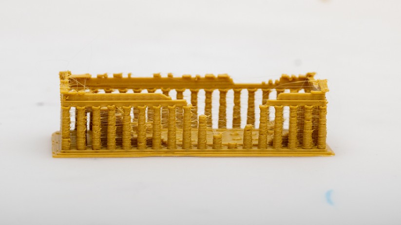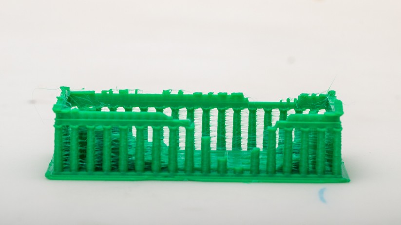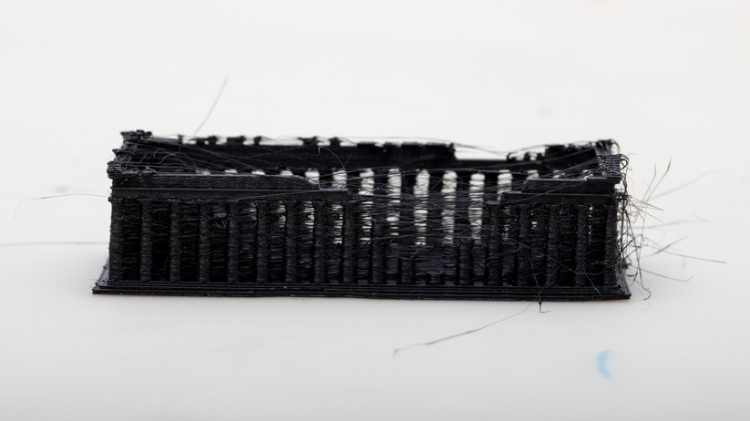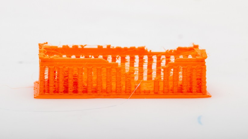 Da der Hotend-Aufbau des Magicians Pro zu starkem Stringing neigt, orientierten wir uns bei allen Filamenten am unteren Ende des Temperaturbereichs. Eine geringere Drucktemperatur verringert das Stringing-Verhalten, erzeugt aber auch mehr Bewegungsdruck auf das Modell. Wir erzielten letztlich mittelmäßig gute Druckergebnisse mit PLA, PLA+, TPU und kleinen Modellen aus ABS.