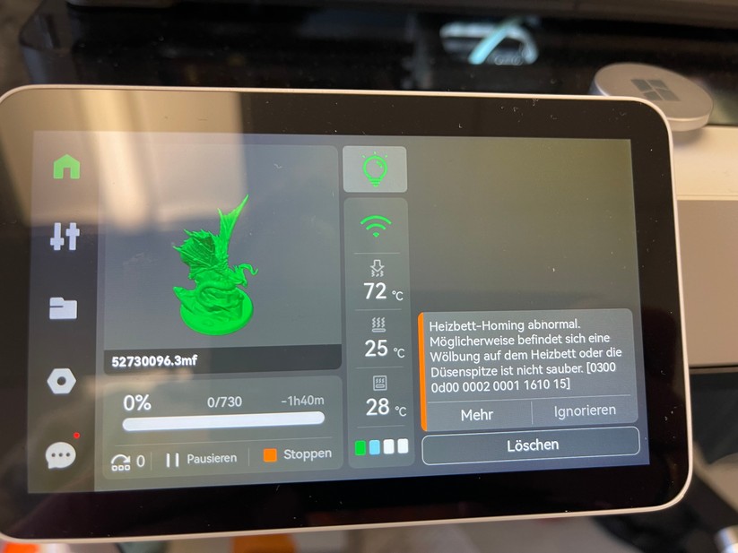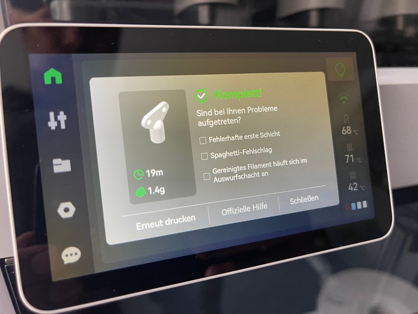 Generell funktioniert die Drucker-Firmware gut. Doch der Touchscreen reagiert nach unserem Geschmack etwas zu träge und in den Tiefen des Druckermenüs verbirgt sich noch der eine oder andere kleine Bug. Zum Beispiel bei den Daten des ABL. Diese können anscheinend manuell nachjustiert werden – die dafür benötigte Tastenbelegung ist allerdings verwirrend oder gar nicht vorhanden.