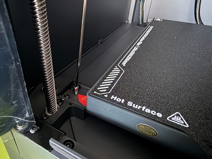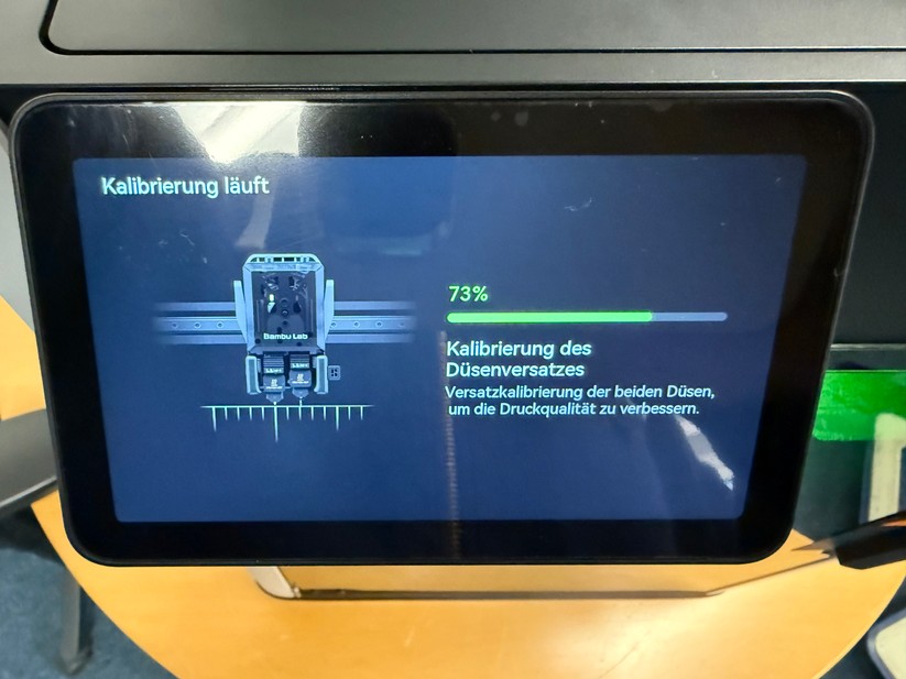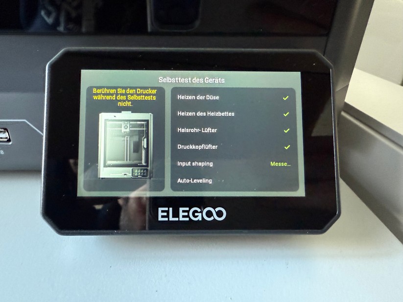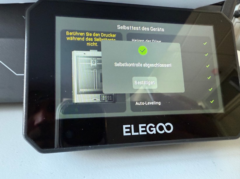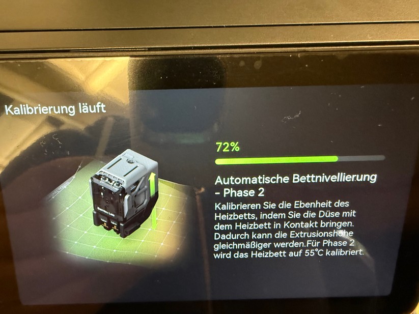 Danach erfolgt das automatische Leveling und die Kalibrierung. Eine Durchflusskalibrierung gibt es ebenso wenig wie vollständiges Auto-Z; wer ein perfekt geleveltes Druckbett möchte, kann das mit der Zettelmethode und Schrauben unterhalb des Druckbetts manuell durchführen. Das war bei unserem Testgerät nicht nötig, ist aber möglich.