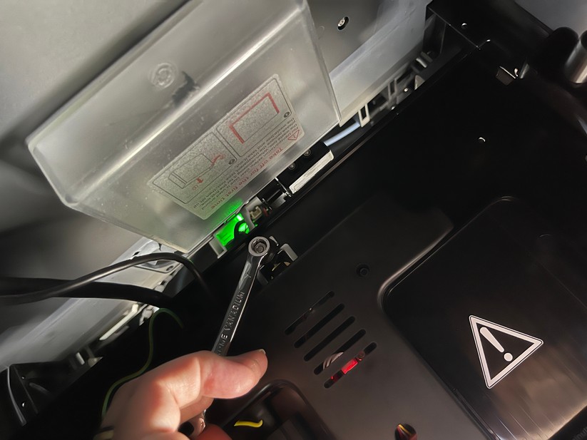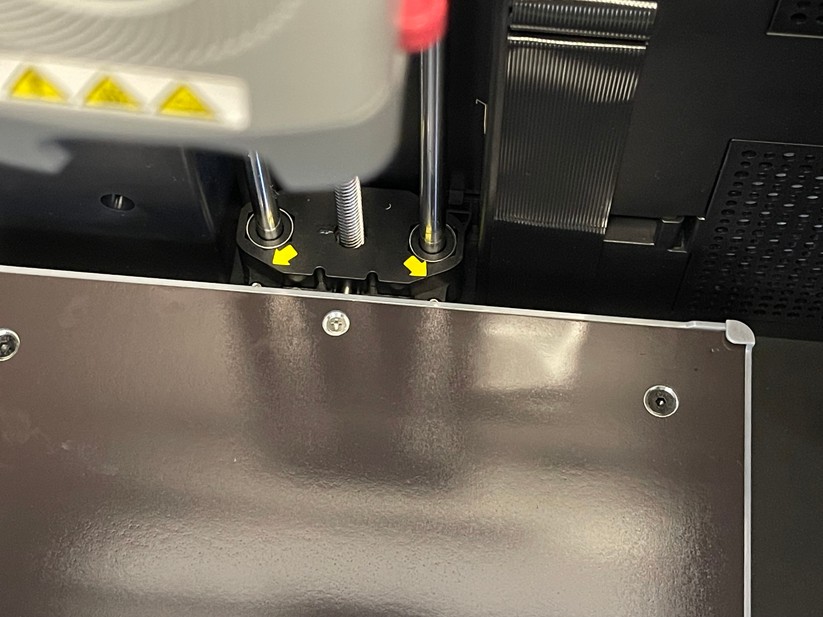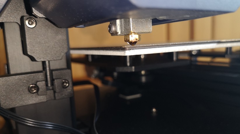 Auch der Druckbett-Leveling-Test fiel leider nur mit mittelmäßigem Ergebnis aus. Auf der linken Seite war die Druckdüse zu nah am Druckbett, rechts zu weit weg. Gemerkt haben wir dies, als ein Test des Auto-Bett-Levelings (ABLs) keine gleichmäßige erste Schicht ergab. Dies war der erste Stand der Dinge und so ging es an die Suche der Fehlerquelle(n). Da das Druckbett keine Schrauben zur manuellen Nivellierung besitzt, konnte die Ursache nur beim Druckkopf oder dessen Z-Führung zu finden sein.