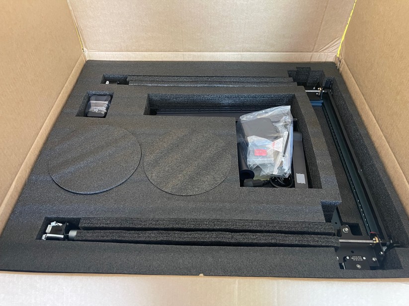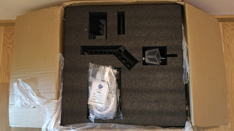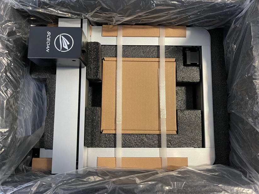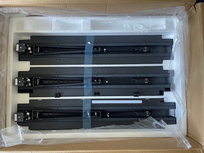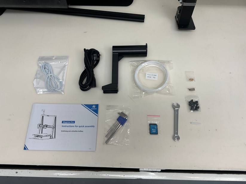 Der Mingda Magician Pro wird noch oldschool in Styropor verpackt, was beim Auspacken jeden umweltliebenden Menschen einen Stich in Herz beschert. Dennoch kam der kompakte Bausatz auch so sicher bei uns an. Dieser besteht aus nur zwei vormontierten großen Modulen plus ein paar Einzelkomponenten. Neben Stabilisatoren und Rollenhaltern gehört noch eine Tüte mit Kleinteilen und Werkzeug zum Lieferumfang.
