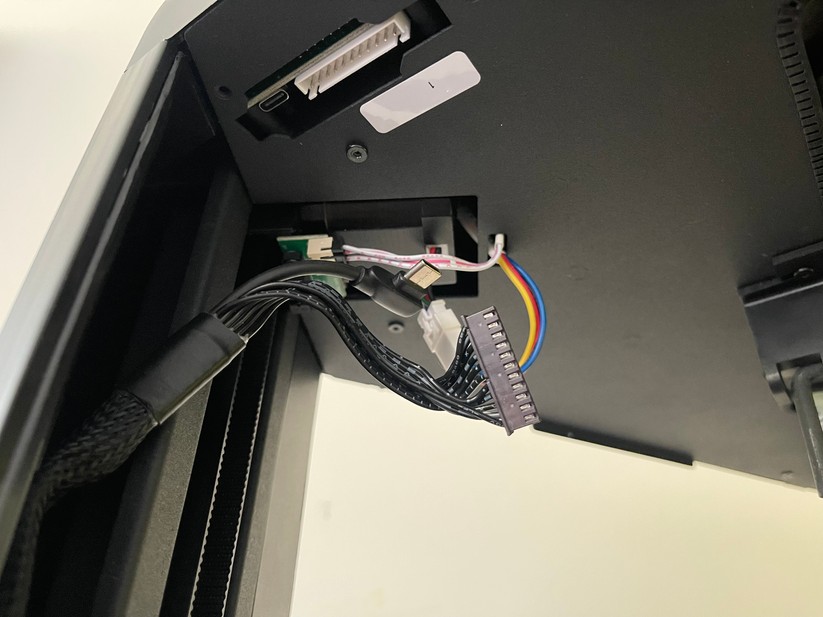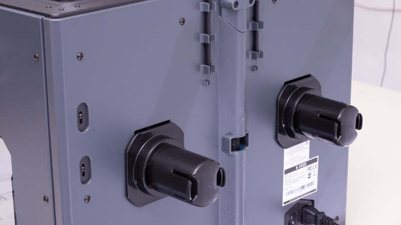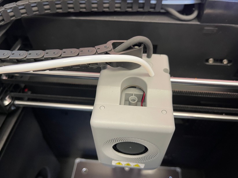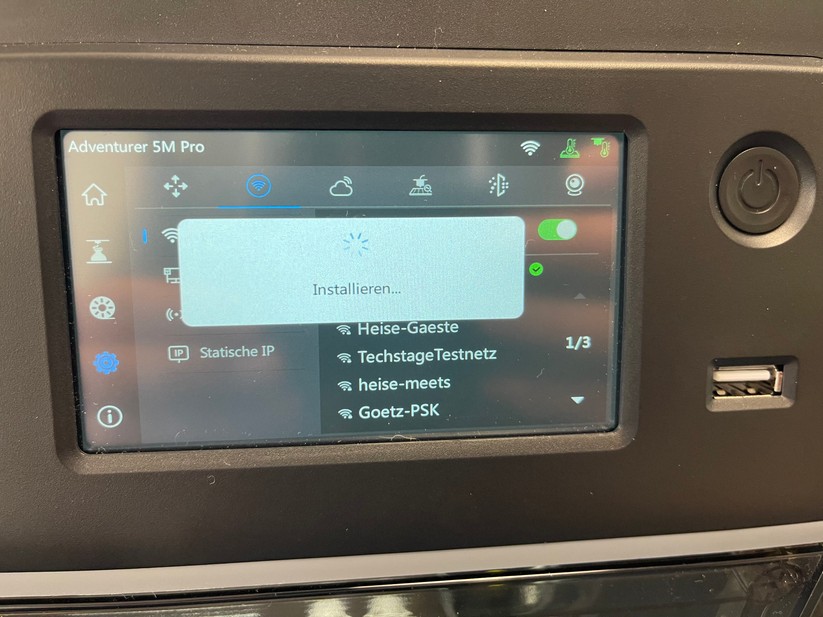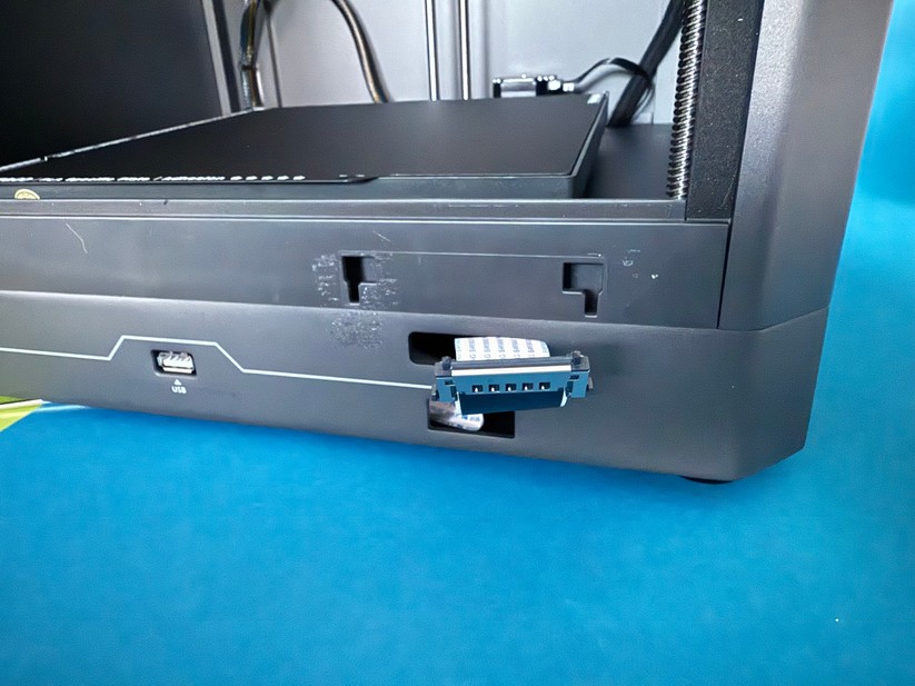 Im Vergleich zum Flashforge Adventurer 5M fehlt ihm leider ein Filter für die Abluft. Dafür gibt es aber einen kräftigen Keramik-Heizkörper, der den Bauraum schnell auf Betriebstemperatur bringt. Dafür zieht die Heizung aber auch 500 Watt im Maximum – gut, dass das nur ein paar Minuten dauert, ansonsten begnügt sich der Drucker im laufenden Betrieb mit 150 bis 200 Watt. Apropos Heizung: Kurz nach der Vorstellung des Druckers machten Videos im Netz die Runde, dass man sich an dem Heizelement einen Stromschlag holen kann. Es steht wohl auch unter Spannung, wenn die Heizung nicht läuft, und die Abstände des Schutzgitters aus Kunststoff ist groß genug, das eine Pinzette durchpassen würde. Wir schätzen das Risiko, sich hier in der Praxis einen Schlag zu holen, nicht so groß ein. Dennoch bleibt eine unnötige Gefahr, die sich durch ein engeres Schutzgitter oder eine andere Platzierung lösen ließe.