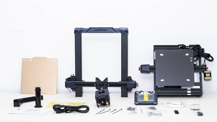 Der Kobra 2 wird gut verpackt in klassischer Modulbauweise ausgeliefert. Hierbei muss der Käufer den oberen Rahmen mit der unteren Plattform verbinden und danach den Druckkopf montieren. Die weiteren Schritte sind das Anbringen von Touchscreen und Rollenhalter; dann kann es losgehen.