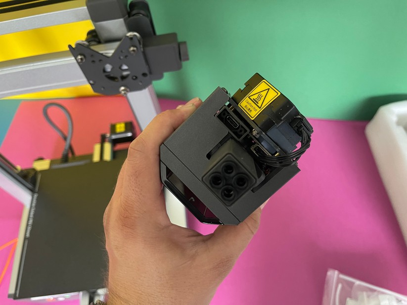 Für eine hohe Druckgeschwindigkeit ist außerdem eine stärkere Heizpatrone nötig, damit das Filament auch bei schnellerem Durchsatz schmilzt. Während der erste Kobra mit einem 40-Watt-Thermistor ausgestattet ist, bringt der Nachfolger eine 60-Watt-Heizpatrone mit. Das reicht in der Praxis für die Druckgeschwindigkeiten des Kobra 2 aus.