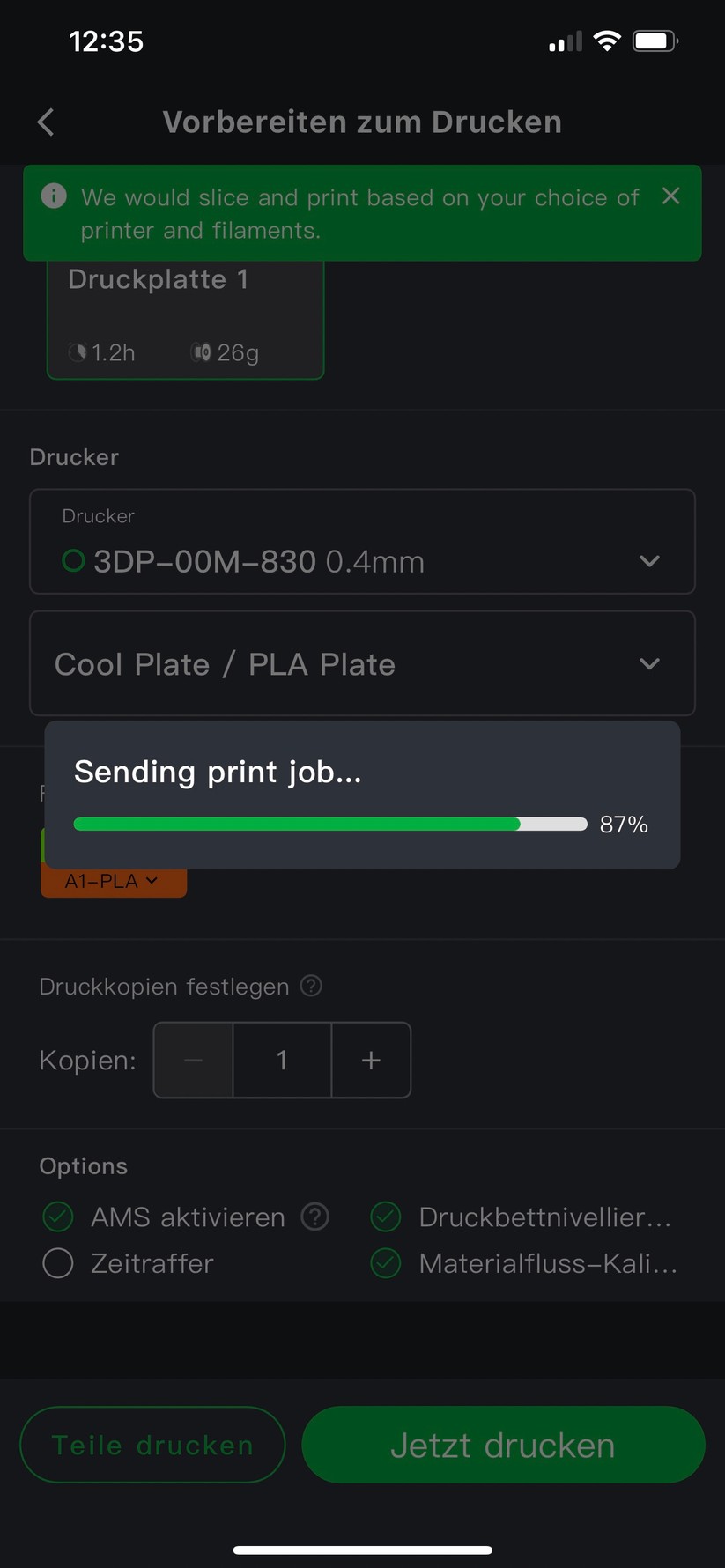 Qidis eigene Slicer-Software, mit der man die Druck-Modelle im STL-Format mit den passenden Einstellungen zu Druckqualität und -Auflösung, Geschwindigkeit, Stabilität, Support und so weiter in den Maschinencode für den Drucker umwandelt, basiert auf Slic3r. Wir finden die Software nach unseren Erfahrungen beim Test des X-Max 3 sehr unübersichtlich und machen gleich einen großen Bogen drumherum. Der auf Cura basierende Qidi Print Slicer wird nicht mehr gepflegt; entsprechend sind auch keine Profile für den Q1 Pro hinterlegt. Stattdessen setzen wir auf unseren derzeitigen Favoriten, den Orca Slicer. Theoretisch sollte die Software auch direkt über WLAN drucken können. Bei uns funktioniert das nicht, der Drucker findet auch keine neue Firmware – nur durch Zufall stellen wir fest, dass es tatsächlich ein Software-Update gibt, das die Verbindungsprobleme löst. Später ausgelieferte Drucker scheinen bereits mit Version 4.4.18 zum Kunden zu kommen – dennoch sollte jeder besser kurz im Menü einmal nachsehen und diese Version im Zweifelsfall von Hand nach der Anleitung über einen USB-Stick installieren. Andernfalls funktionieren sonst keine Firmware-Updates over the Air, also über das WLAN direkt am Drucker.