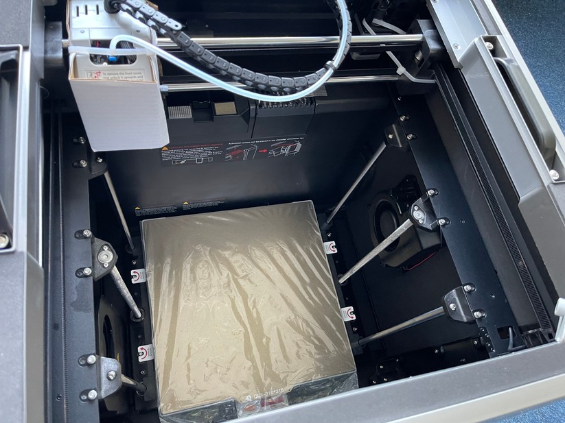 Klug gepackt: Der Materialwechsler AMS und weiteres Zubehör sind sicher im Inneren des Druckers verbaut.