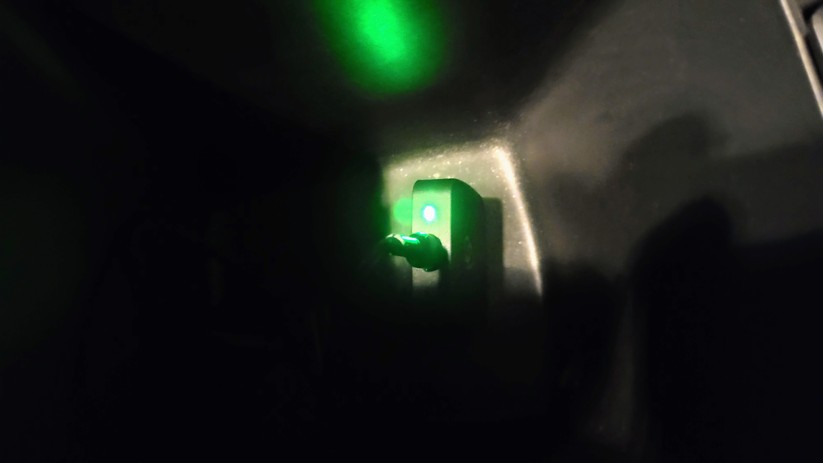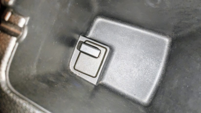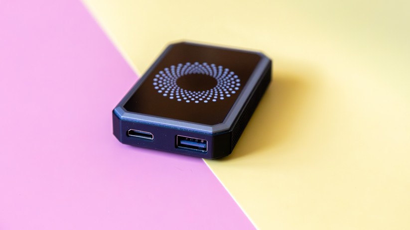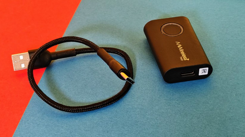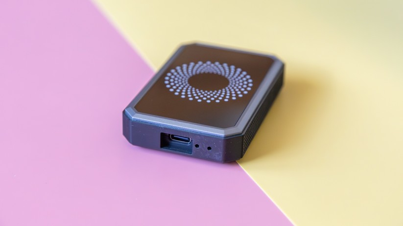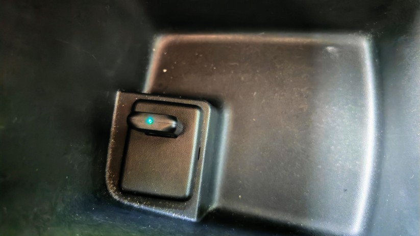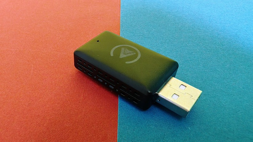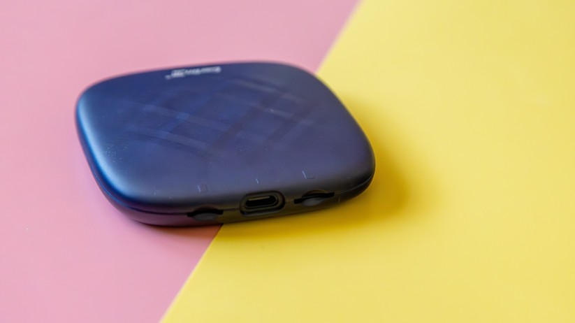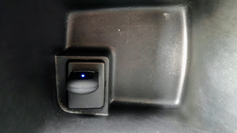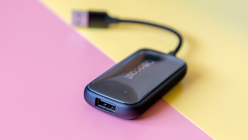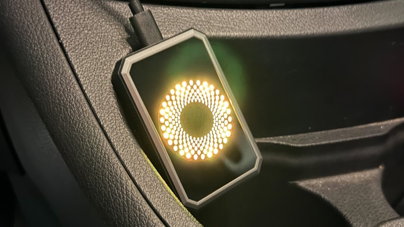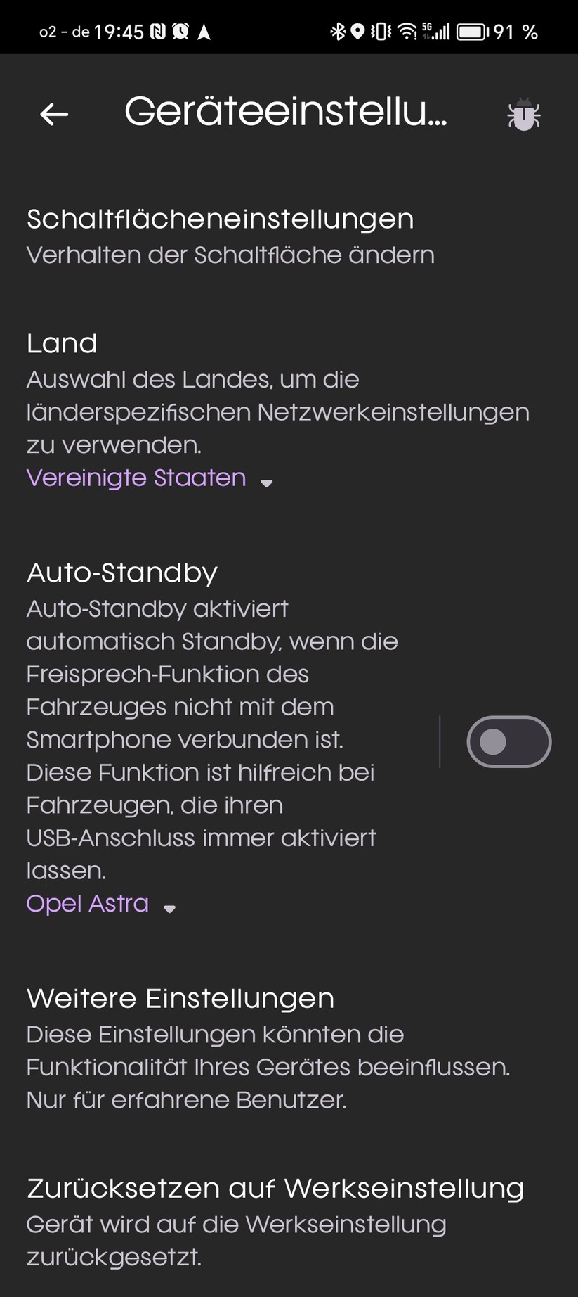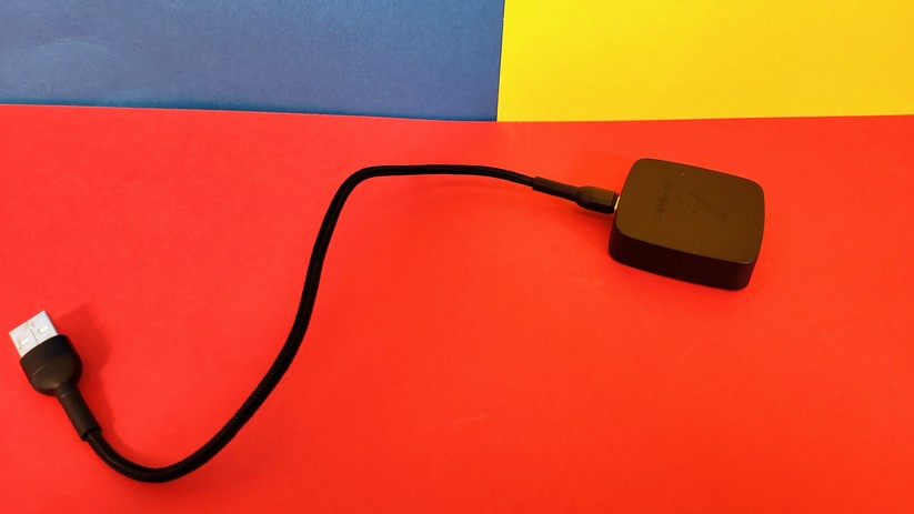 Neben dem USB-A-Port befindet sich ein kleiner Schalter. Dieser dient zum Start der Kopplung mit dem Smartphone sowie zum Umschalten zwischen zwei verbundenen Geräten. Eine LED-Anzeige informiert über den Betriebszustand: Rot steht für „Strom erhalten, aber keine Verbindung“, Blau für eine „aktive Bluetooth-Verbindung“ und Grün für den „Upgrade-Modus“, der Firmware-Updates über das Smartphone ermöglicht.