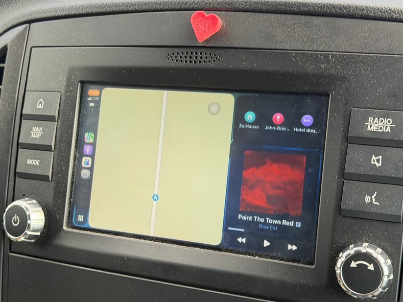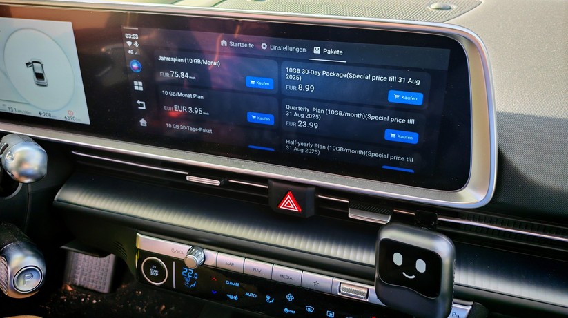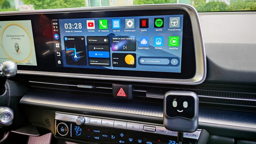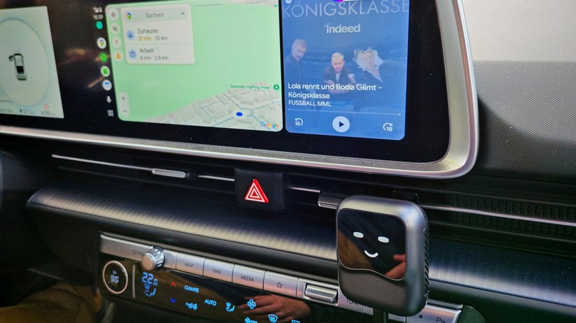 Wer lieber klassisch während der Fahrt Android Auto oder Apple CarPlay verwenden möchte, kann das ebenfalls tun – kabellos und ohne zusätzliche Hardware. Einziger Wermutstropfen: Ein Adapter von USB-A auf USB‑C fehlt im Lieferumfang, falls das eigene Fahrzeug nur über einen Typ‑C‑Anschluss verfügt. Solche Adapter sind jedoch günstig erhältlich. Eine Sprachsteuerung auf Deutsch gibt es bisher nicht.