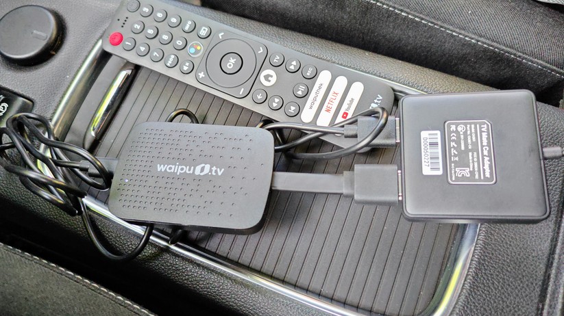 Laut Hersteller ist der Ottocast-Adapter mit den gängigsten TV-Sticks sowie dem Chromecast kompatibel. Auch Spielkonsolen können Nutzer anschließen. Im Test funktionierte das Setup mit dem Amazon Fire TV Stick 4K Max (Testbericht) sowie dem Waipu TV Streaming Stick (Testbericht). Unverzichtbar ist zudem die Fernbedienung des Streaming-Sticks, da das Fahrzeug-Display keine Touch-Eingaben unterstützt – es wird lediglich das HDMI-Bild angezeigt.