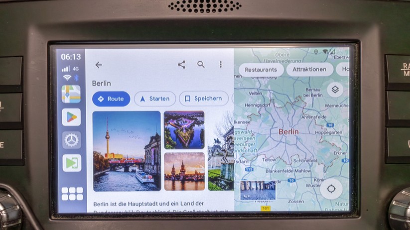 Android Auto bringt smarte Features des Smartphones in das Auto. Die Schnittstelle erlaubt die Kommunikation zwischen Infotainment-System und einem Android-Gerät. Apps des Smartphones werden hier sozusagen auf dem Bildschirm im Pkw gespiegelt. Damit stehen etwa Google Maps zum Navigieren oder Spotify für Musik zur Verfügung. Auch die Sprachsteuerung per Google Assistant ist möglich. Nachrichten liest das System dann auf Wunsch vor.