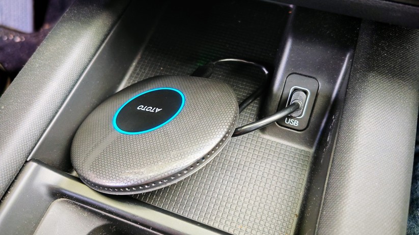 Die Installation gestaltet sich grundsätzlich einfach: Man steckt den Adapter in den USB-Anschluss des Fahrzeugs, sucht anschließend mit dem iPhone oder Android-Smartphone per Bluetooth nach dem Gerät, koppelt es und wartet, bis die Verbindung steht. Danach sollte auf dem Infotainment-System das Icon für Android Auto oder Apple Carplay erscheinen.