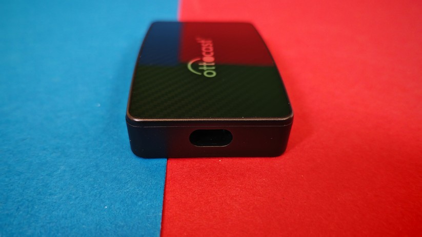 Der Ottocast Play2Video Pro ist eine kleine, rechteckige Kunststoffbox, die in etwa die Größe eines Benzinfeuerzeugs hat. Er verfügt über einen USB-A- und einen USB-C-Anschluss. Im Lieferumfang enthalten sind jeweils ein Kabel von USB-C auf USB-C sowie von USB-A auf USB-C. Eine Kurzanleitung liegt in englischer und deutscher Sprache bei und erläutert die grundlegenden Einrichtungsschritte.
