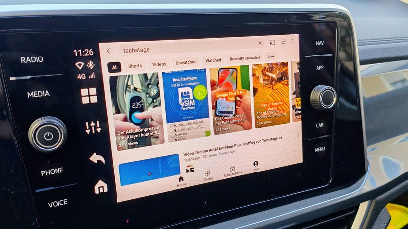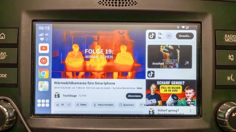 Die Darstellung auf dem Fahrzeug-Display entspricht möglicherweise nicht der nativen Auflösung eines Fernsehers. Im Test war die Bildqualität für Videoinhalte ausreichend, kleinere Texte in Menüs wirkten jedoch teils unscharf.