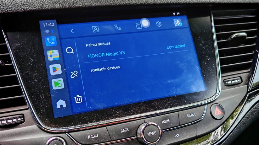 Beim iPhone klappte die Kopplung sofort, nach erfolgter Erstverbindung war Carplay nach knapp über 10 Sekunden schon startklar. Mit Android Auto gab es zunächst Probleme – vermutlich, weil zuvor der Dongle per Carplay verbunden war. Die genaue Ursache kennen wir nicht. Erst beim zweiten Versuch gelang die Verbindung zum Honor Magic V3. Nach längerer Standzeit braucht der Aufbau etwa 45 Sekunden, später dann ebenfalls nur noch rund 10 Sekunden – was sehr flott ist für solch einen Adapter. Die Verbindung wurde im Test stabil aufrechterhalten.