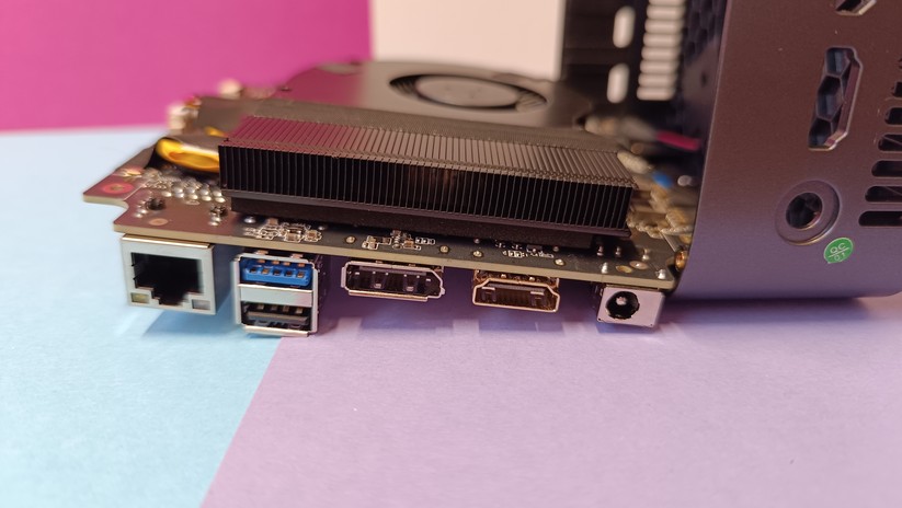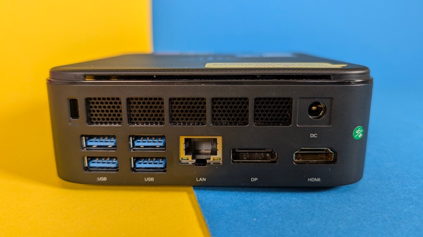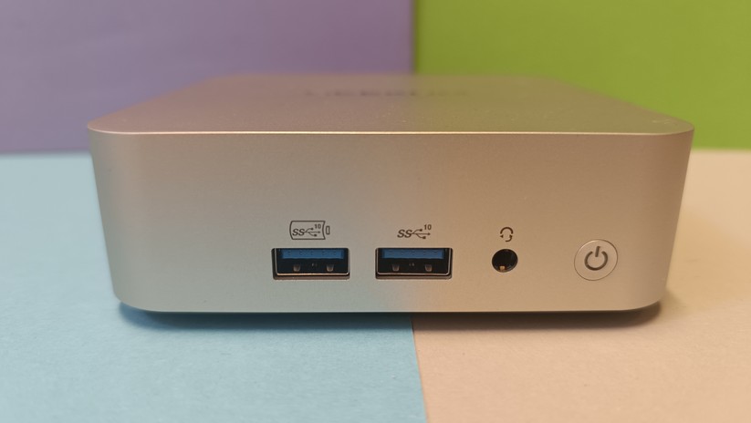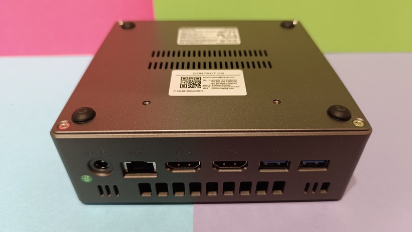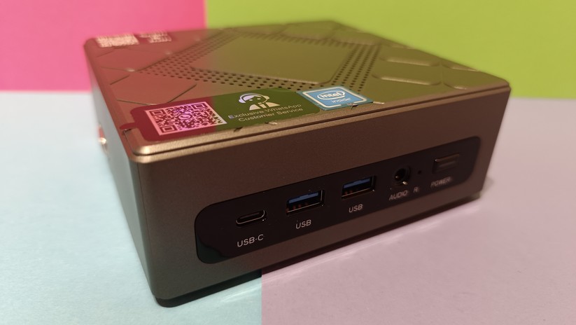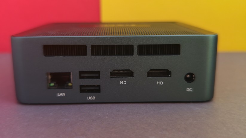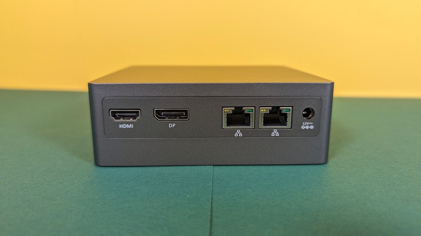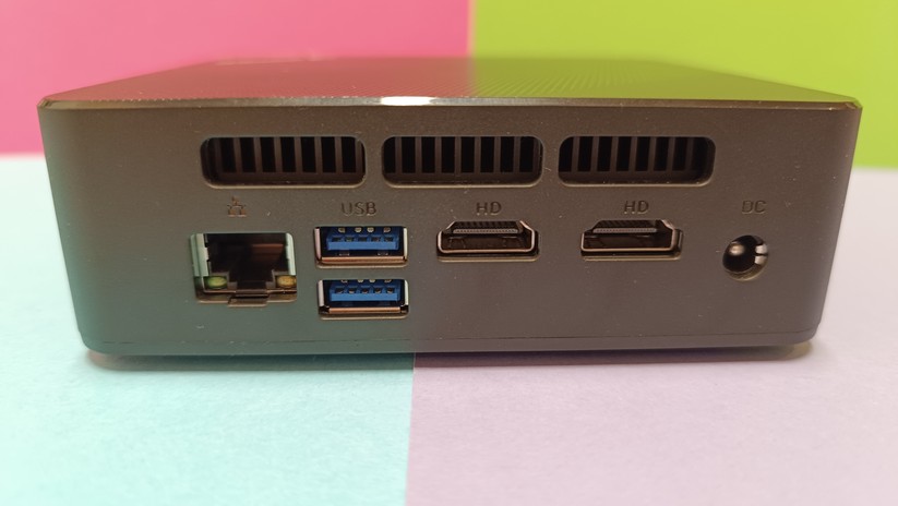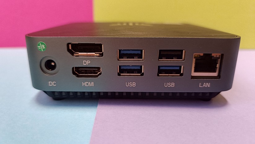 Zur Bildübertragung stehen zwei HDMI-Anschlüsse bereit, zusätzlich gibt es noch einmal VGA – ein Displayport-Anschluss wäre natürlich noch besser. Die HDMI-Anschlüsse unterstützen 60 Hz bei 4K-Displayauflösung. Des Weiteren ist einmal Gigabit-LAN verfügbar, die Stromversorgung erfolgt über eine DC-Buchse und leider nicht per USB-C. Das ist in dieser Preisklasse aber auch unüblich. Der USB-C-Anschluss auf der Vorderseite des Mini-PCs kann nur für Datenübertragung genutzt werden. Bei den Drahtlosschnittstellen ist der CK10 mit Wi-Fi 6 und Bluetooth 5.2 gut gerüstet.