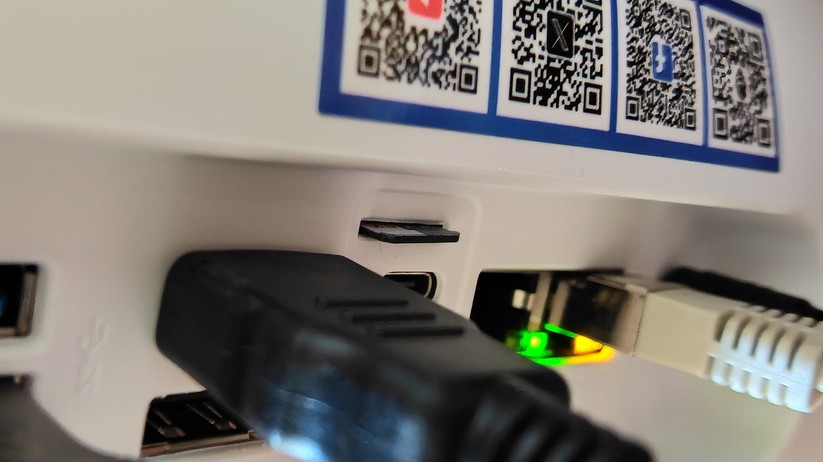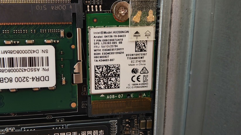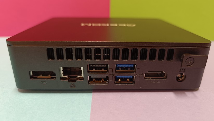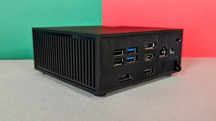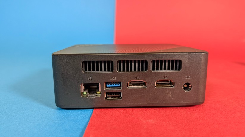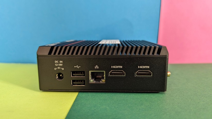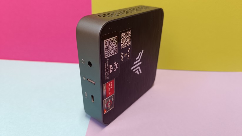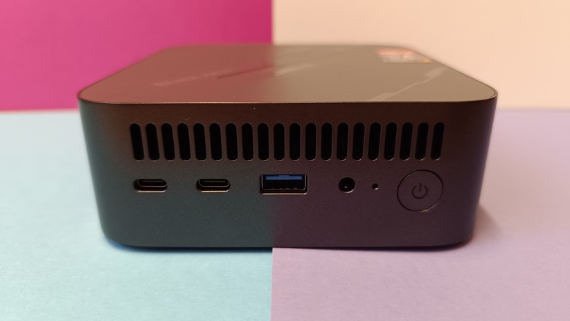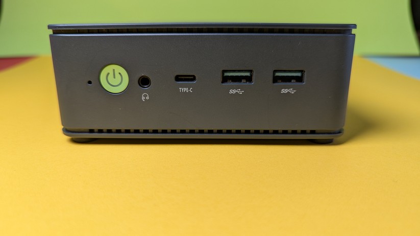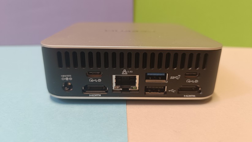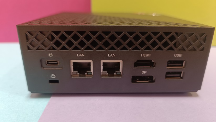 Das Highlight für diesen Preisbereich ist der USB-C-Anschluss auf der Vorderseite, der die Bildübertragung via Displayport-Protokoll unterstützt. Zusätzlich kann man zwei weitere Monitore über Displayport 1.4 und HDMI 2.0 auf der Rückseite anschließen. Jeder Anschluss unterstützt 4k bei 60 Hz. Zusätzlich gibt es einmal Gigabit-LAN, der Einsatz etwa als Firewall-Lösung ist also ohne zusätzliche Hardware nicht möglich. Die Drahtlosschnittstellen sind mit Wi-Fi 6E und Bluetooth 5.2 solide ausgestattet. Verwendet werden die Chipsätze Mediatek MT7922 und Realtek RTL8168/8111 für Wifi und Ethernet-LAN verbaut, was gerade für Linux-Nutzer von Interesse sein dürfte.
