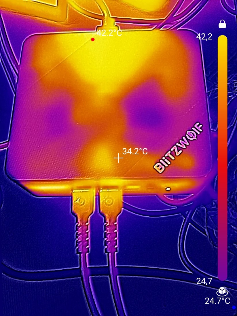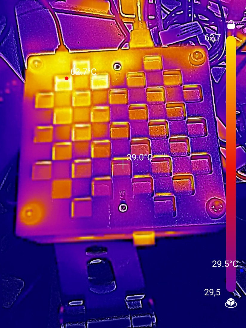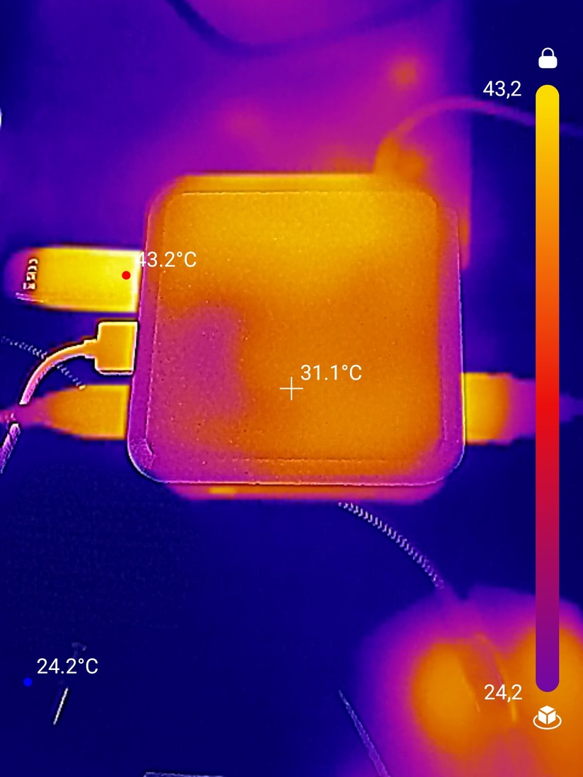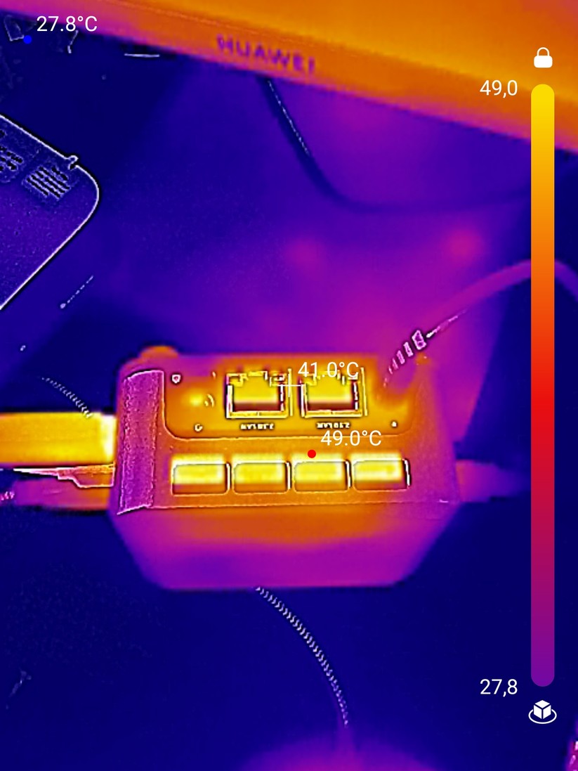 Der Verbrauch des Systems liegt bei ruhendem Desktop bei 12 Watt, bei Verwendung einzelner Anwendungen, wie dem Browser, bei bis zu 20 Watt. Unter Volllast steigt er zunächst auf 29 Watt an und pendelt sich dann bei 26 Watt ein. Damit ist der Betrieb auch mit 30 Watt starken GaN-Netzteilen möglich.