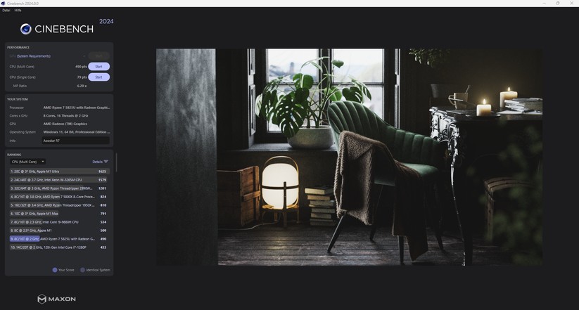 Der Ryzen 5 7430U ist vorrangig auf Effizienz getrimmt. Obwohl er Teil der 7000er-Serie ist, müsste er sich leistungsseitig hinter dem bekannten Ryzen 7 5800U einordnen, da beide CPUs auf der gleichen Architektur basieren. So zumindest die Theorie, denn der Ryzen 5 erreicht bei PCmark 10 konstant 5596 Punkte, was sogar minimal mehr als bei so manchem 5800U ist. Auch im 3Dmark Time Spy sind die beiden CPUs mit 953 Punkten auf Augenhöhe.