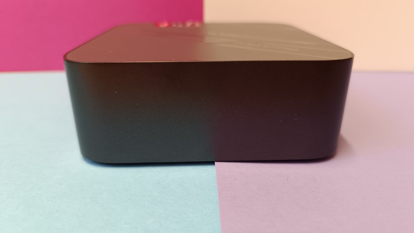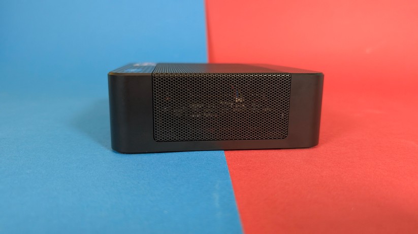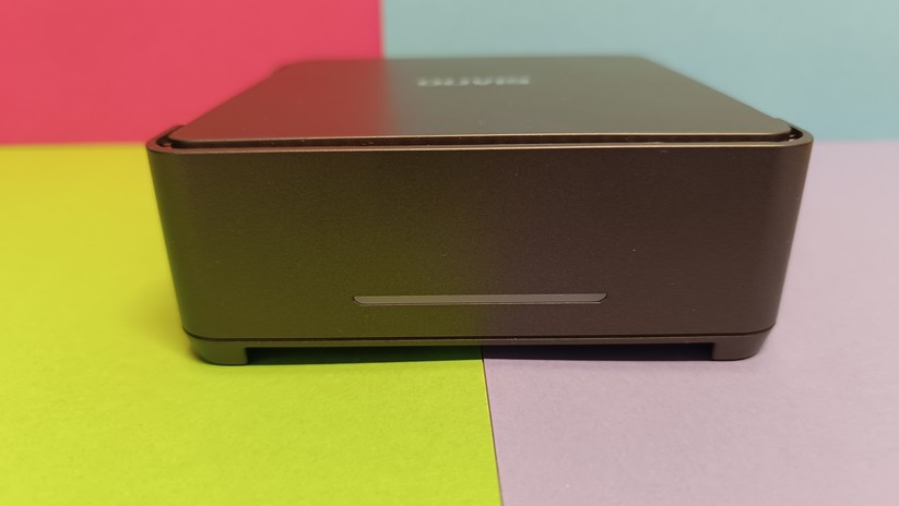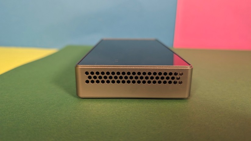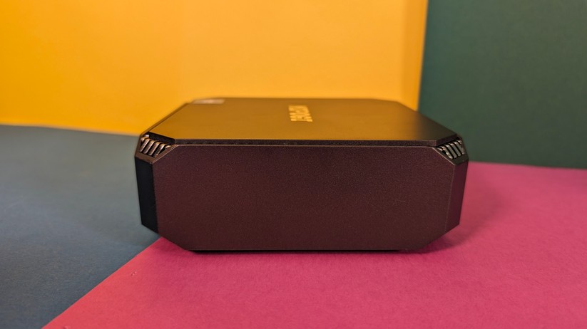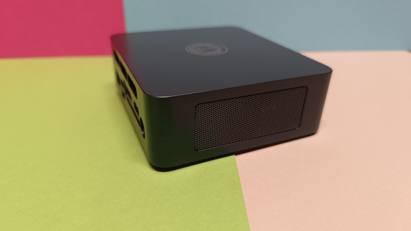 Auch wenn wir nun schon öfter Metallgehäuse im Budget-Bereich hatten, ist das Kunststoffgehäuse des K1 kein Dealbreaker. Gerade im Preisbereich unter 300 Euro sind Metallgehäuse eine Seltenheit – und wer den Mini-PC hinter seinem Monitor versteckt, den kümmert die Material-Ästhetik ohnehin wenig. Generell können wir sagen: Das matt-schwarze Gehäuse ist gut verarbeitet und ohne jegliche scharfen Kanten. Auch die abgerundeten Ecken gefallen uns gut. Der Kunststoff zerkratzt nicht zu leicht, zieht aber deutlich Fingerabdrücke an. Insgesamt wirkt das Gehäuse wie aus einem Guss.