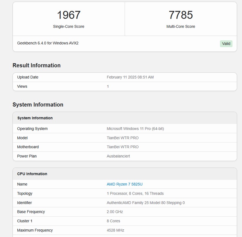 Die starke Performance der CPU bestätigt auch den Benchmark Cinebench 2024, wo es im Multi-Core 184 Punkte und im Single-Core 59 Punkte gibt. Insbesondere der Multi-Core-Score fällt hier auf, der Single-Core-Wert ist etwas niedriger als bei vergleichbaren Systemen. Auch im Cross-Plattform-Benchmark Geekbench 6 zeigt der T8 ein starkes Ergebnis mit 1186 Punkten im Single Core und 2992 im Multi-Core. Beides sind bessere Ergebnisse als die beim kürzlich getesteten Ninkear N10.