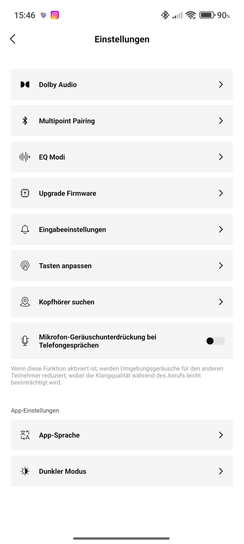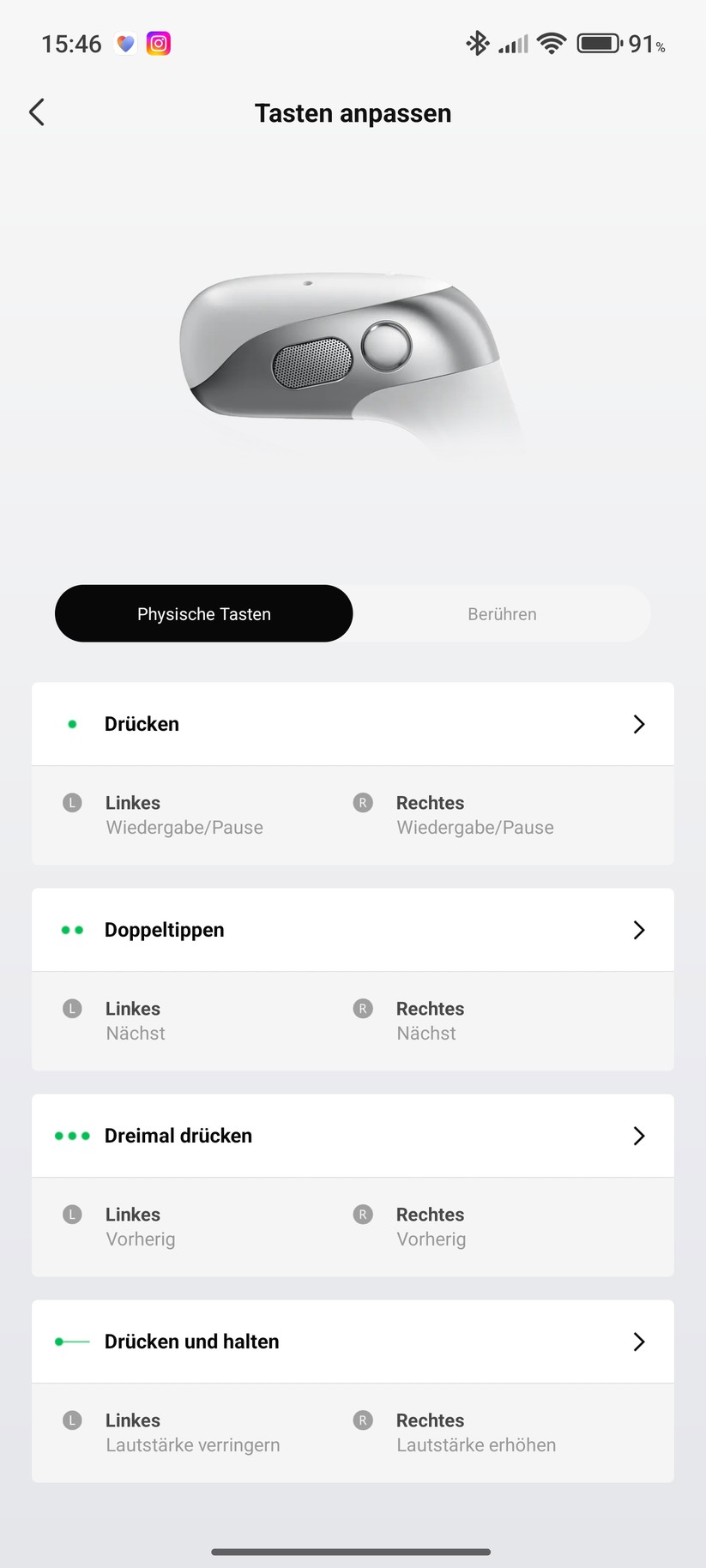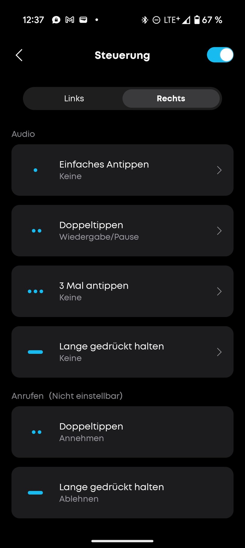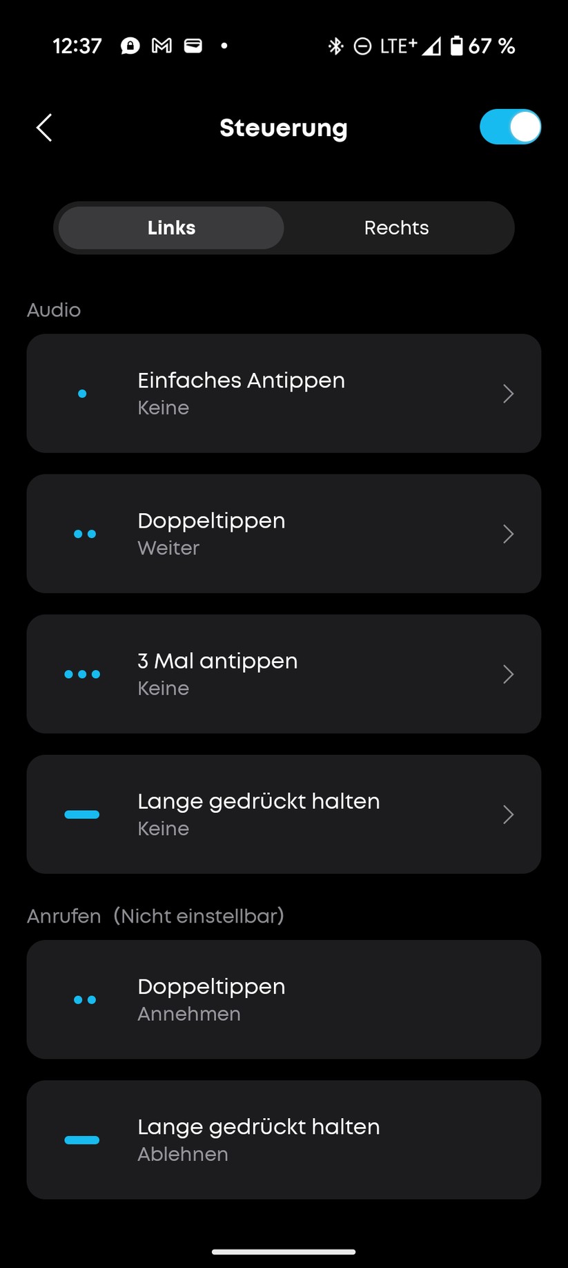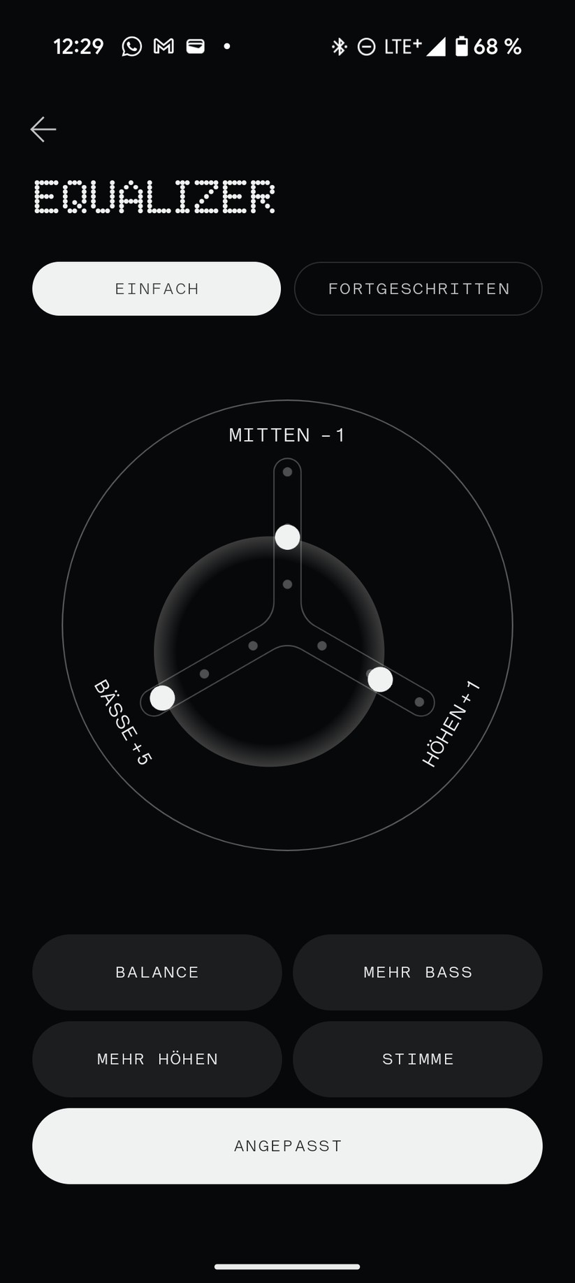 Die Steuerung erfolgt über eine Touch-Oberfläche an den Ohrteilen. Wir bevorzugen zwar physische Knöpfe oder eine Bedienung per Druck. Die umfangreiche App erlaubt die vollständige, individuelle Belegung der Touch-Gesten – für viele ein wichtiges Feature. Zudem gibt es einen umfangreichen Equalizer mit vielen Presets. Wer möchte, kann im benutzerdefinierten 8-Band-Equalizer auch eigene Einstellungen vornehmen und speichern.