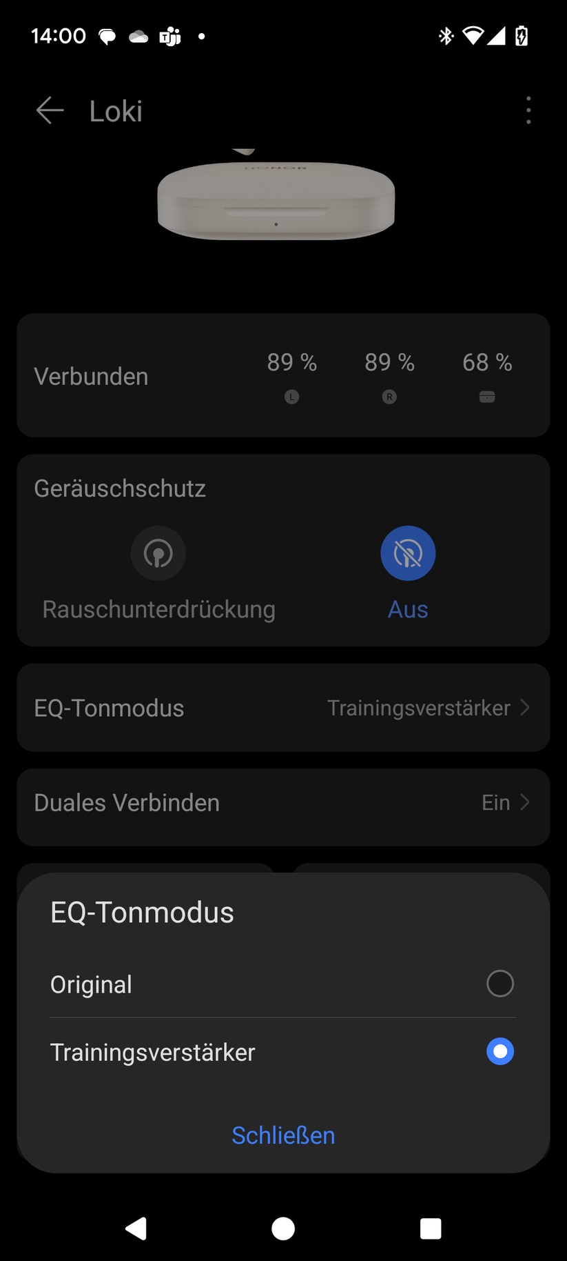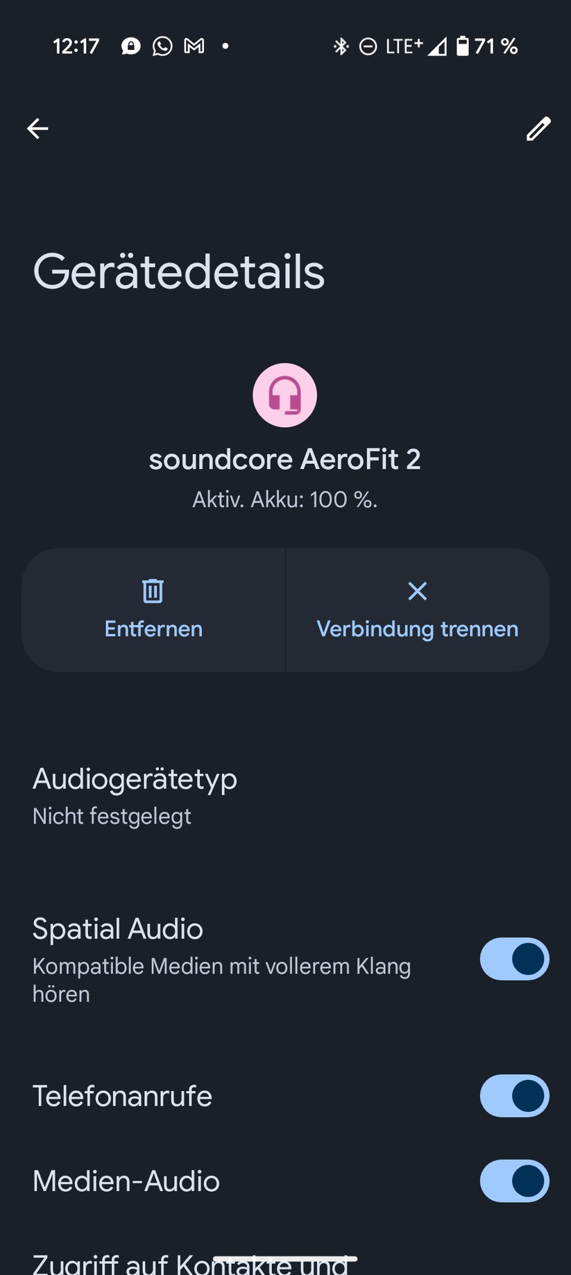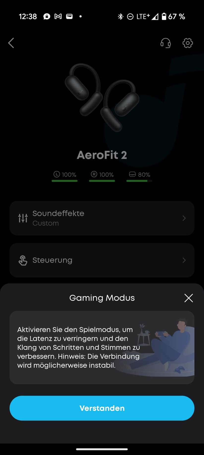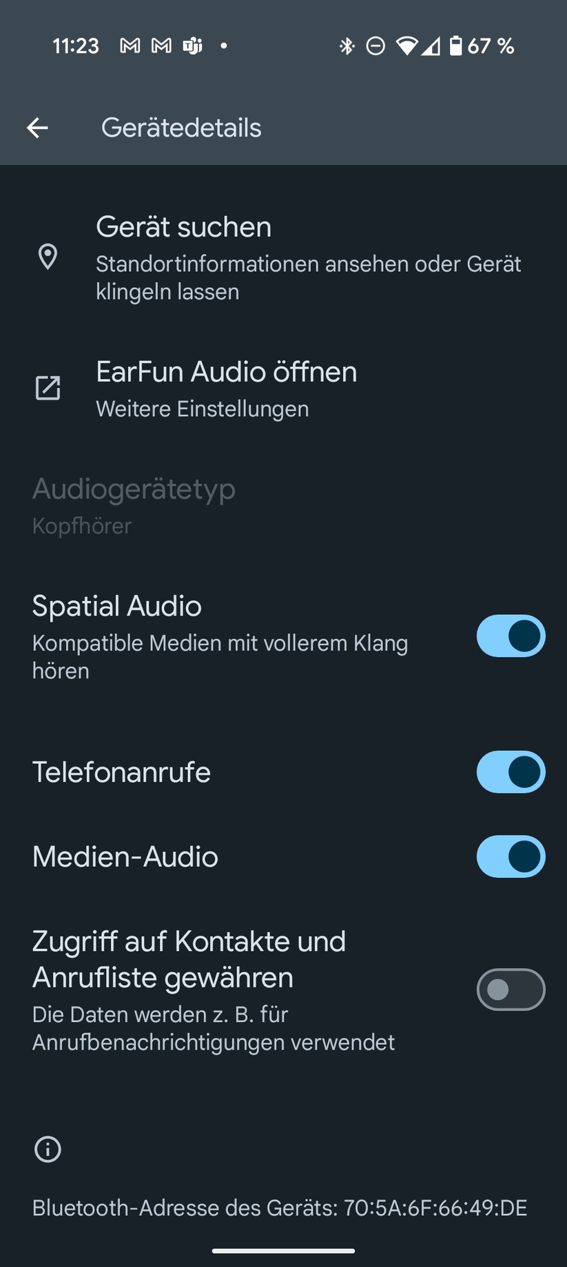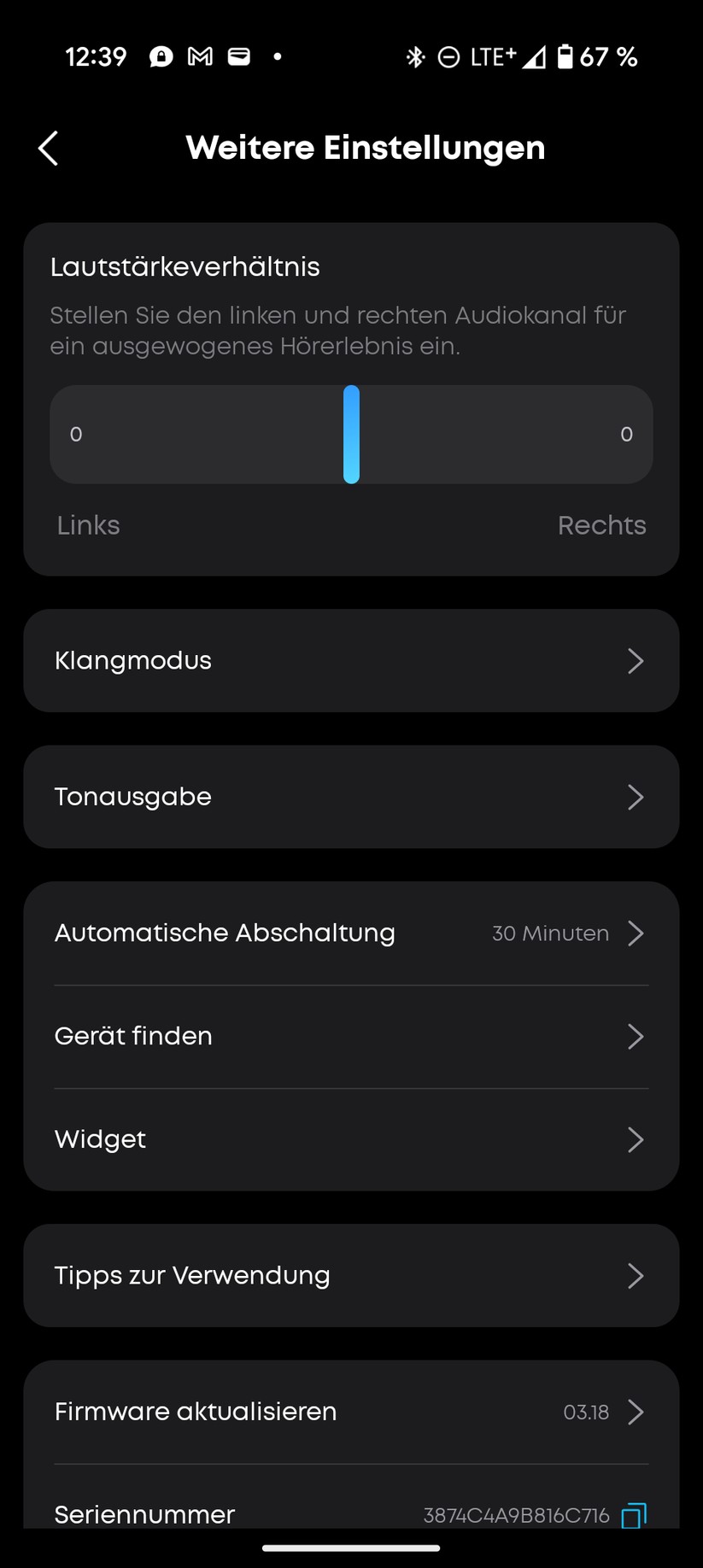 Wird Dolby Audio aktiviert, sofern vom Smartphone unterstützt, bekommt die Musik hörbar mehr Raum und Details. Bei der Bass-Performance zeigen die Niederfrequenz-Speaker ihre Wirkung. Je nach Song kann es etwas druckvoller werden. Das Niveau von ordentlichen Half-In-Ear- oder richtigen In-Ear-Modellen, die näher am Ohrkanal liegen, wird aber nicht ganz erreicht. Das war auch zu erwarten. Im reinen Open-Ear-Segment zählt die Bass-Performance der OpenFit 2+ aber zu den besten am Markt.