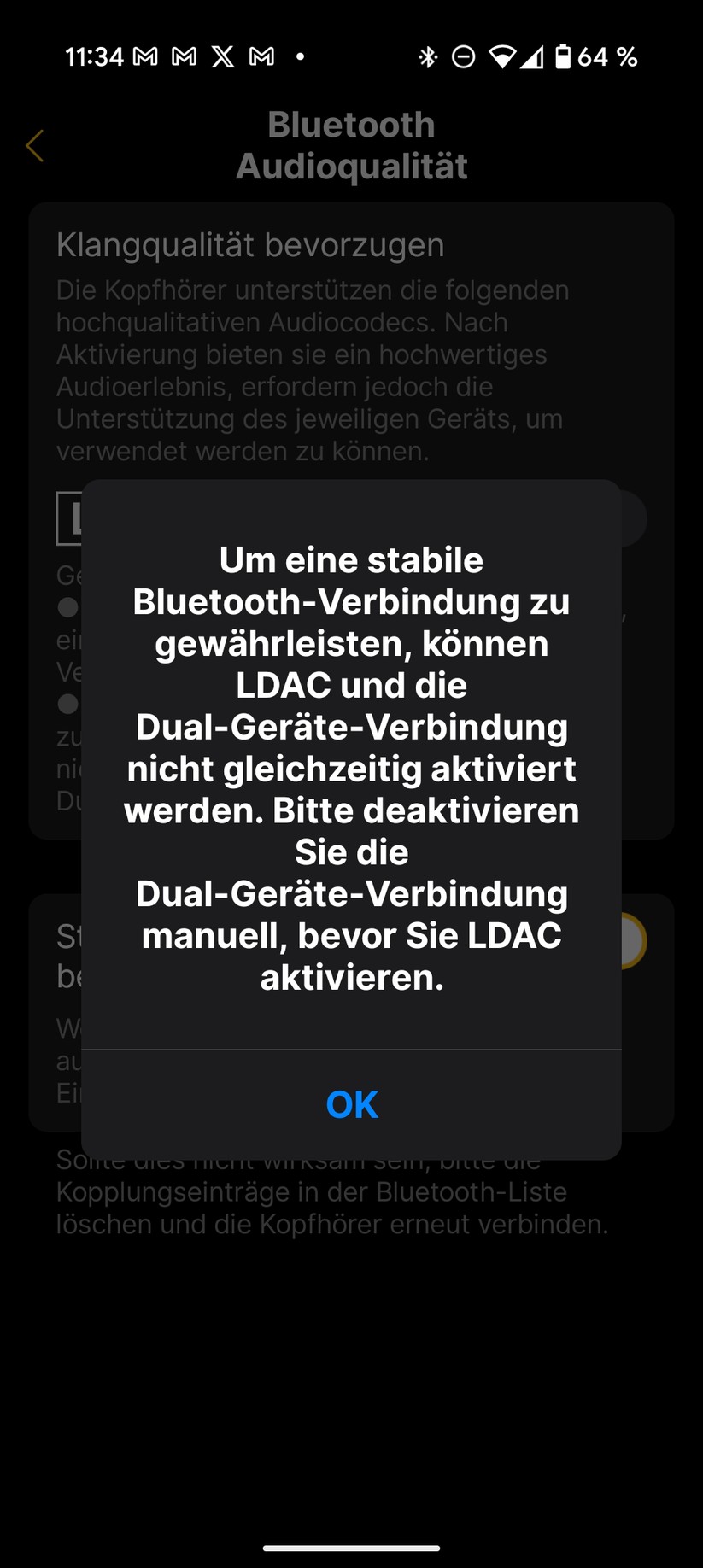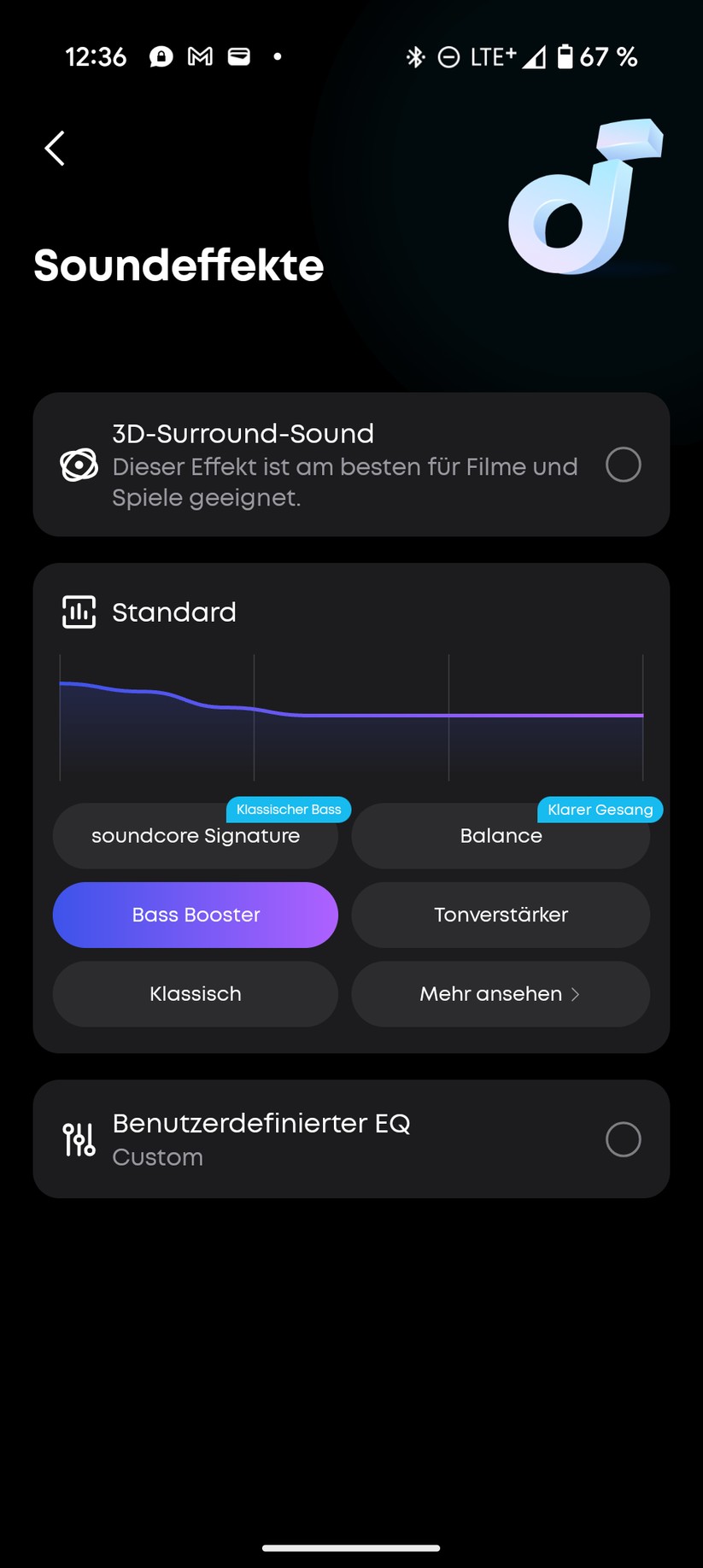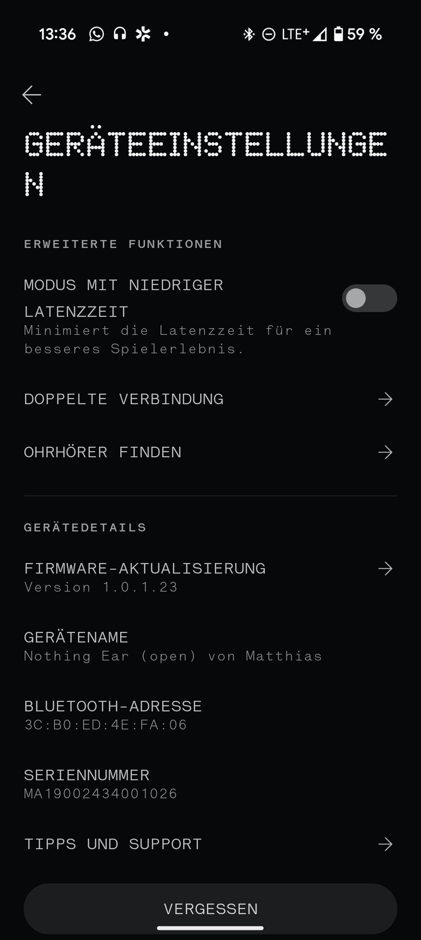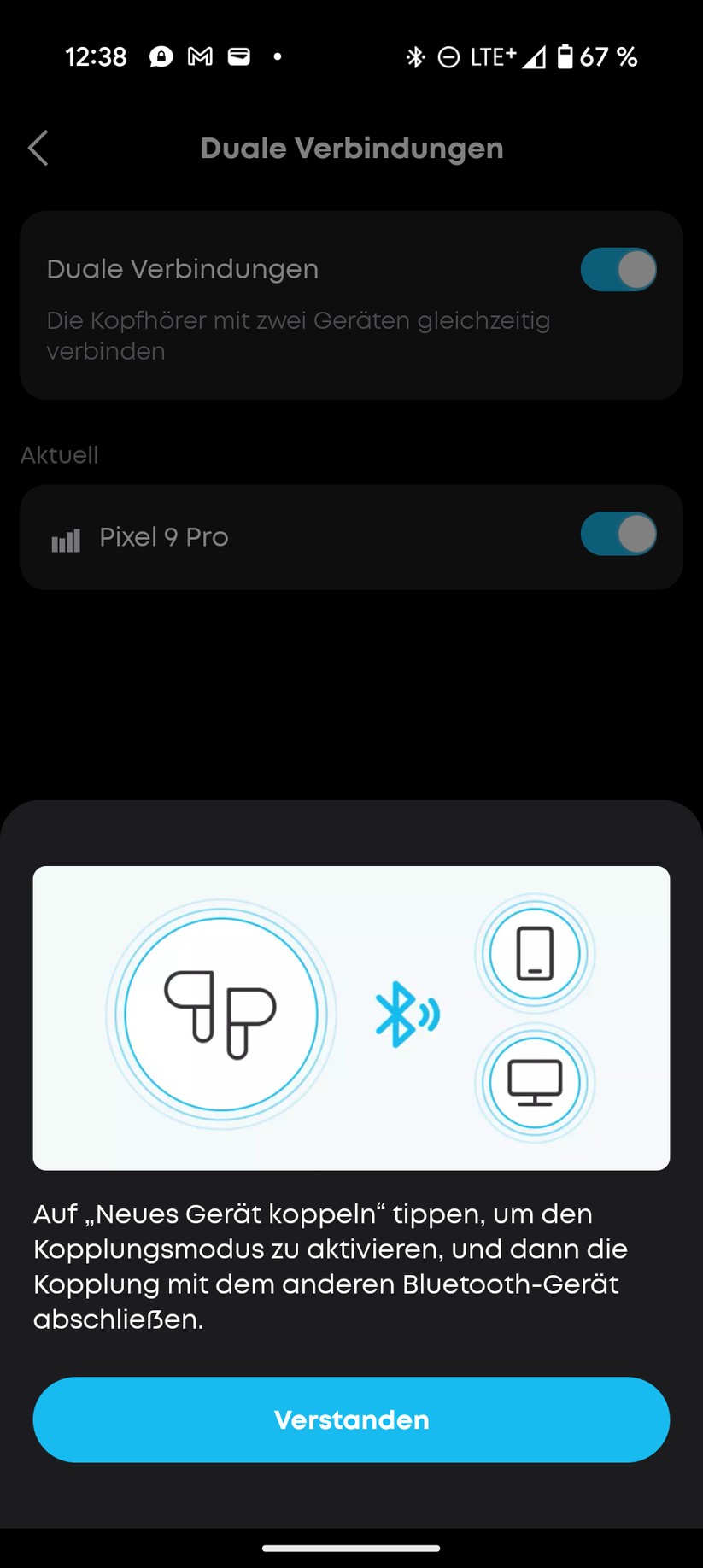 Wird Dolby Audio aktiviert, sofern vom Smartphone unterstützt, bekommt die Musik hörbar mehr Raum und Details. Bei der Bass-Performance zeigen die Niederfrequenz-Speaker ihre Wirkung. Je nach Song kann es etwas druckvoller werden. Das Niveau von ordentlichen Half-In-Ear- oder richtigen In-Ear-Modellen, die näher am Ohrkanal liegen, wird aber nicht ganz erreicht. Das war auch zu erwarten. Im reinen Open-Ear-Segment zählt die Bass-Performance der OpenFit 2+ aber zu den besten am Markt.