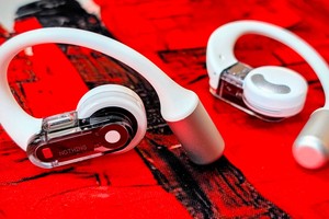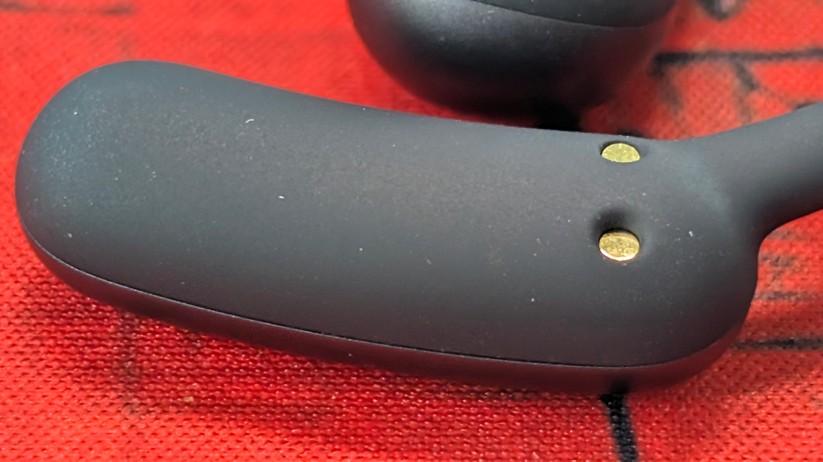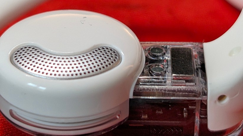 Das Element, das zuvor den Knochenschalllautsprecher darstellte, enthält jetzt die Elektronik und den Akku; es vibriert also nicht mehr. Dafür schwebt indessen ein ähnliches Element als Mini-Lautsprecher über dem Ohr. Dadurch sind die Ohren absolut frei und es gibt auch keine Probleme mit Allergien, Ohrenentzündungen oder auch nur einem „Satz heißer Ohren“ wie bei normalen Over- oder In-Ears.