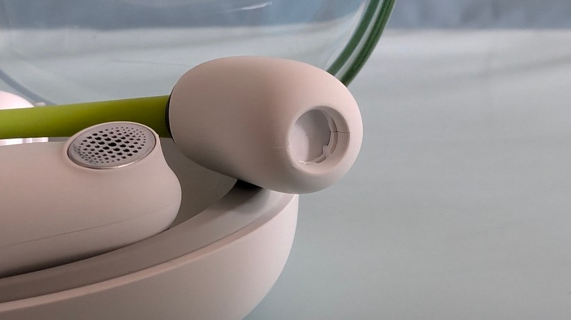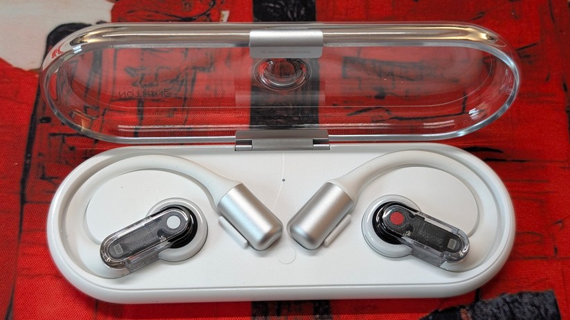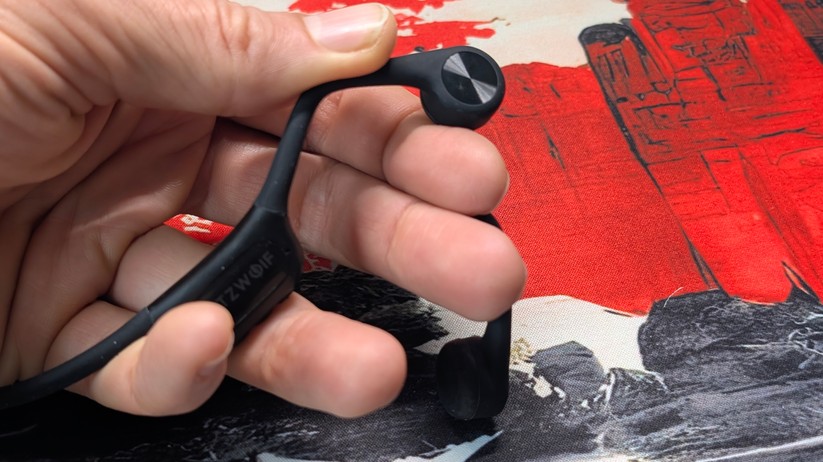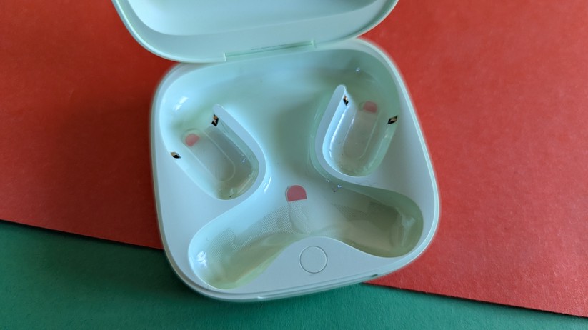 Zum Tragekomfort gibt es einiges zu sagen. Denn wir haben gemerkt: Es hängt sehr vom persönlichen Empfinden und der Toleranz gegenüber Objekten am eigenen Ohr ab, wie angenehm und komfortabel man die Kopfhörer findet. Wir haben die Earbuds mehreren Personen zum Probetragen in die Hände gedrückt. Der Großteil der Tester hatte kein Problem mit dem offenen Design – das gesamte Gewicht der Ohrstücke, die jeweils rund 10 Gramm wiegen, wird hier zwar von den Ohren getragen, aber dank der Bügel gut verteilt. Es gab jedoch ein paar Personen, die das Format des Kopfhörers aufgrund des nicht zu ignorierenden Drucks der Bügel auf das Hinterohr etwas gestört haben. Hier empfehlen wir, am besten die Kopfhörer selbst auszuprobieren und für ein paar Stunden zu tragen.