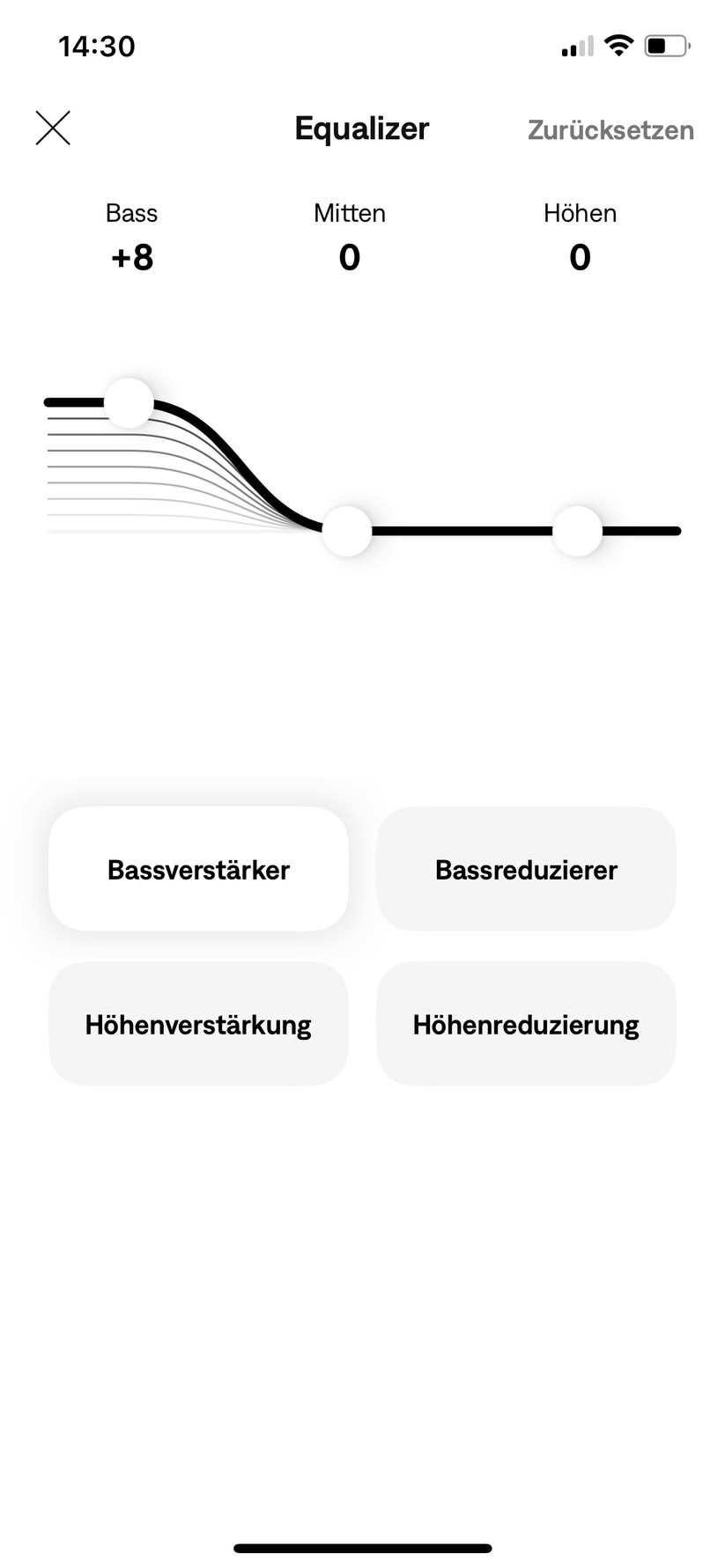 Zusätzlich zum Übersetzer bietet die App auch einen Equalizer, der den Namen allerdings nicht wirklich verdient. Wir können nämlich nur zwischen zwei Tonmodi wählen: „Original“ und „Trainingsverstärker“. Einen echten Equalizer zum benutzerdefinierten Anpassen der Höhen und Tiefen gibt es nicht. Noch dazu unterscheiden sich die Soundmodi kaum hörbar voneinander.