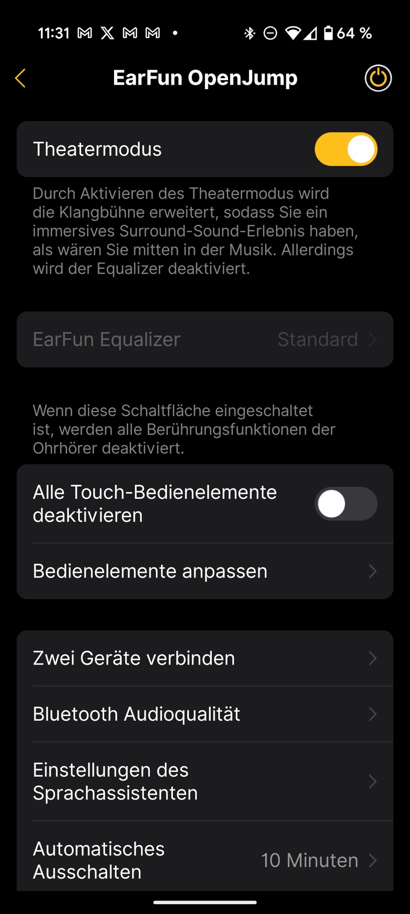 Die Openrun Pro haben außerdem eine App, die jedoch keinen großen Mehrwert bietet. So vermissen wir hier etwa einen Equalizer. Als Bluetooth-Codec ist nur der Standard-SBC-Codec vorhanden, kein AAC und schon gar kein aptX.