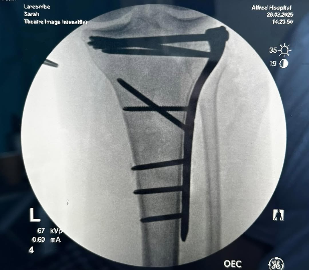 After two nights in Horsham, she was flown to The Alfred in Melbourne on the Tuesday, went under the knife to have plates and pins put in her knee the following day and was discharged two days later to start her rehabilitation journey.