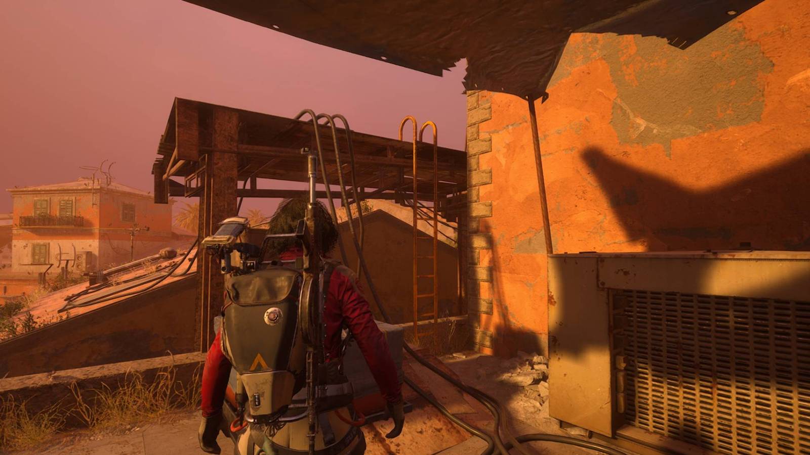 Once you've made it to Red Tower, your objective will change to find the missing battery cell. This is in a small metal box just a stone's throw northeast of Red Tower, in the almost-closed off area with the buildings wrapping around the palm trees. The image above shows the container you're looking for, next to a boarded-up stall.
