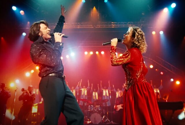 Hugh Jackman plays Vietnam veteran and recovering alcoholic Lightning, aka Mike Sardina, who falls in love with single mom and Patsy Kline impersonator Claire, aka Thunder. She’s the catalyst for their “Neil Diamond experience,” riding the 1990s wave of Diamond’s resurgence while battling both external obstacles and their respective personal demons. The film condenses the timeline and takes some minor liberties here and there, but on the whole it’s quite factually accurate. (The duo really did open for Pearl Jam and Eddie Vedder joined them briefly onstage for “Forever in Blue Jeans.”)