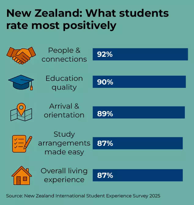 The crux of this story is that experience is matching expectations. The New Zealand International Student Experience Survey 2024 found that 86% of Indian students rated their overall experience positively. The 2025 edition of the same survey deepens that picture: globally, students singled out the quality of connections (92%), quality of education (90%), and arrival and orientation support (89%) as standout strengths of studying in New Zealand.