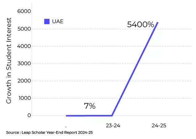 Interest among Indian students for UAE exploded by 5,400% in 2024–25.