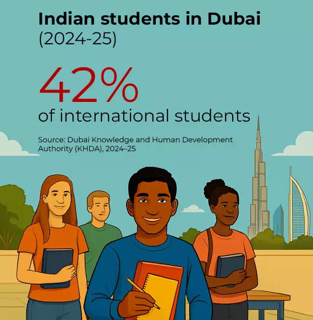 According to Dubai’s Knowledge and Human Development Authority (KHDA), Indians account for 42% of Dubai’s international higher-education intake in 2024–25.