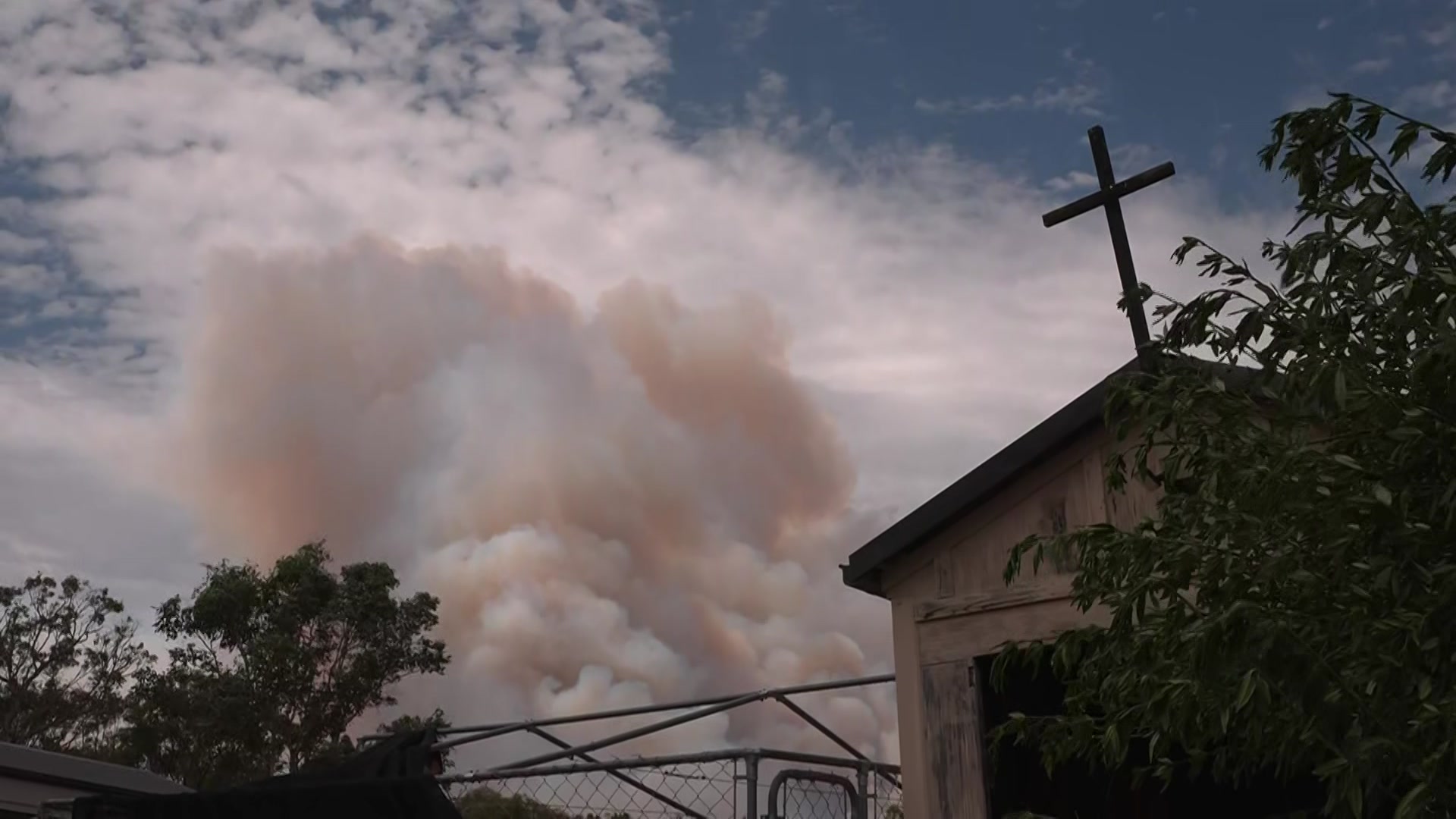 On Thursday afternoon, smoke from the Longwood fire filled the sky above Christine Pulis's property. (ABC News)