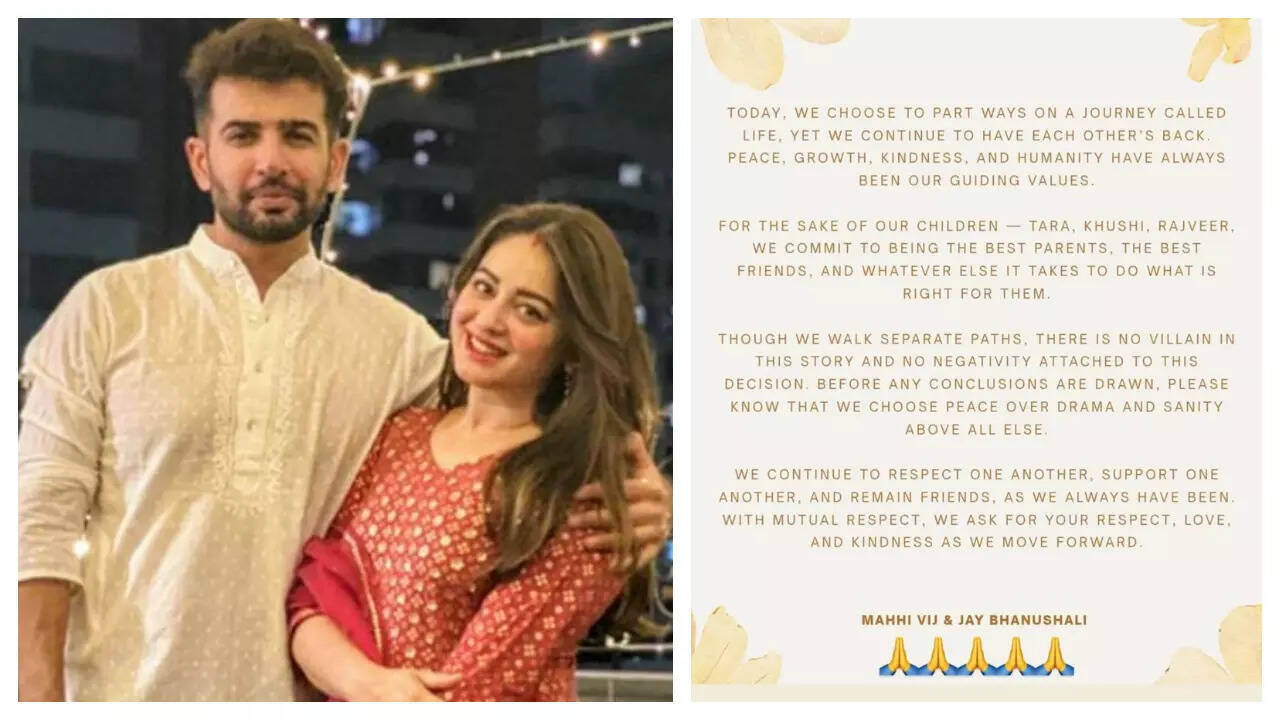 Television actors Jay Bhanushali and Mahhi Vij have confirmed their separation after 14 years of marriage. The couple announced their decision to part ways amicably, emphasizing their commitment to their children, Tara, Khushi, and Rajveer. They stated their intention to remain supportive friends, prioritizing peace and respect.