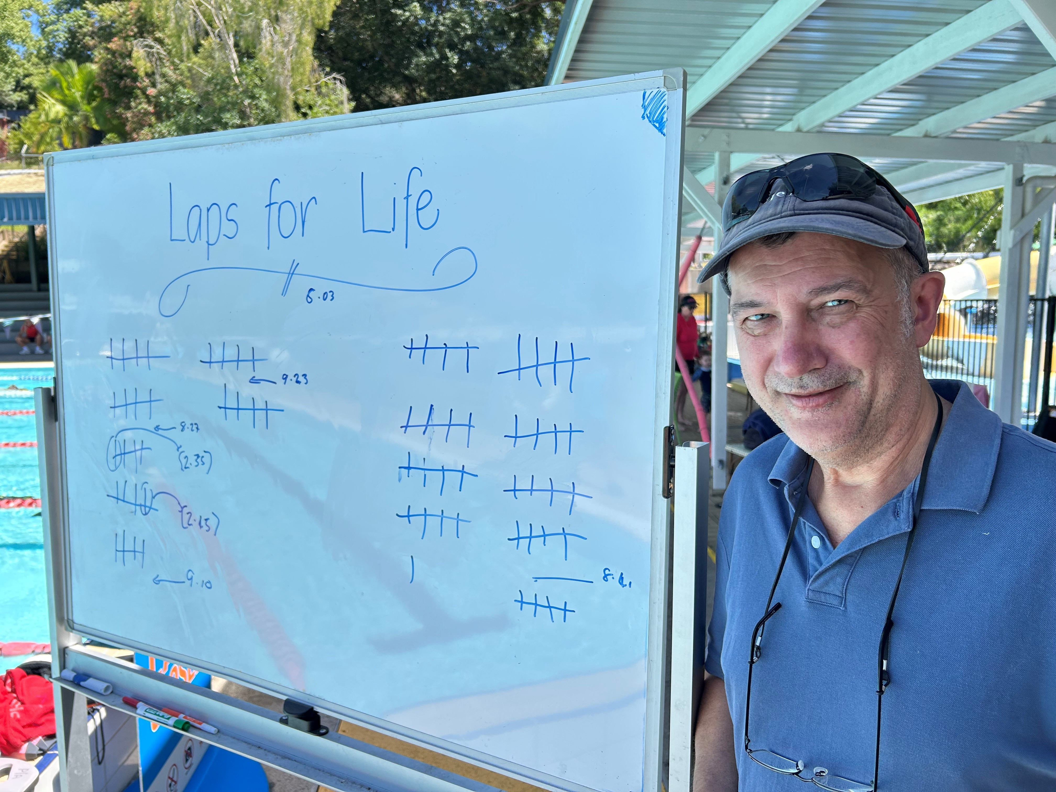 Aaron Gray kept a tally of his wife's laps. (ABC Sunshine Coast: Braedan Jason)