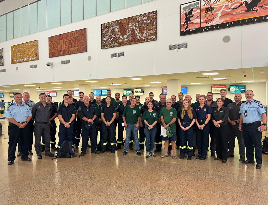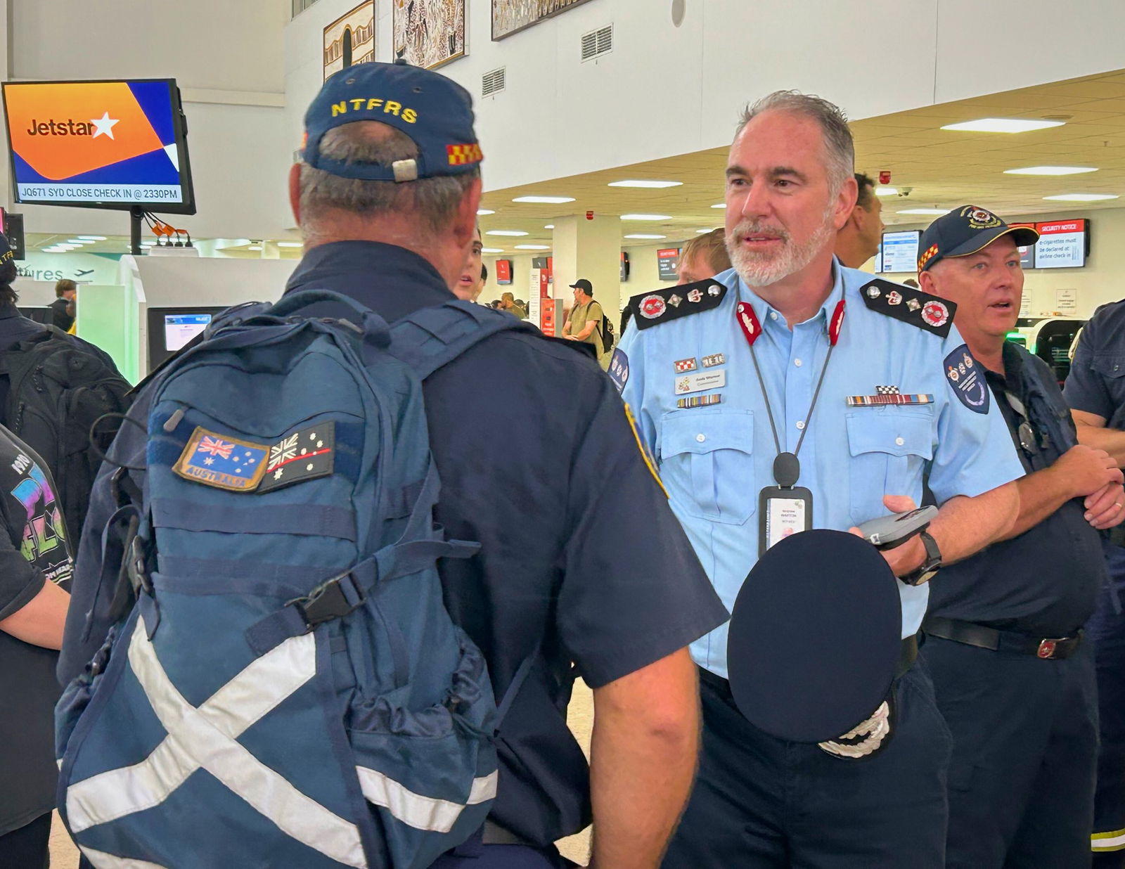 Just after midnight, a group of 34 — a mix of volunteer, auxiliary and career firefighters — flew out of Darwin.